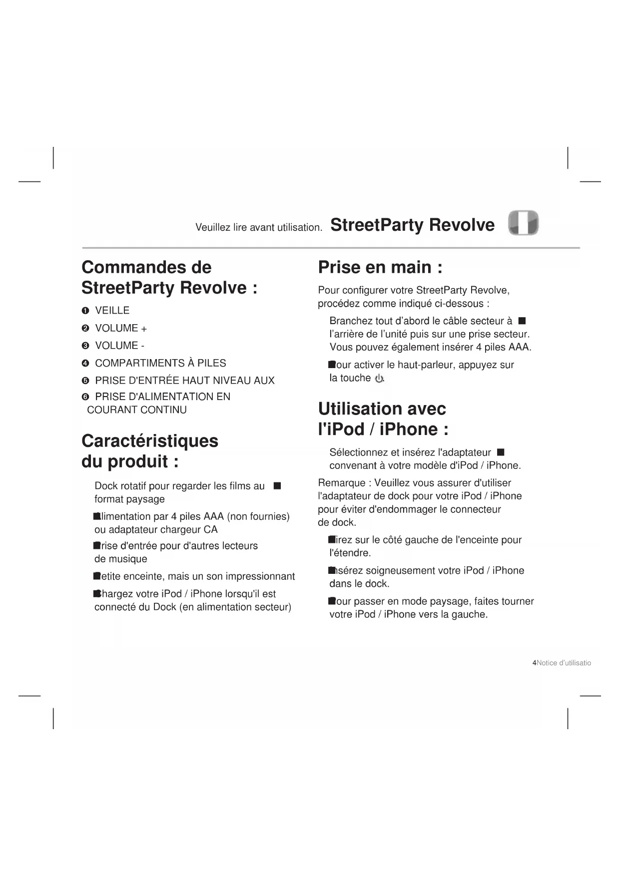 votre iPod / iPhone vers la gauche.5 GEAR4 | StreetParty Revolve | Notice d’utilisation