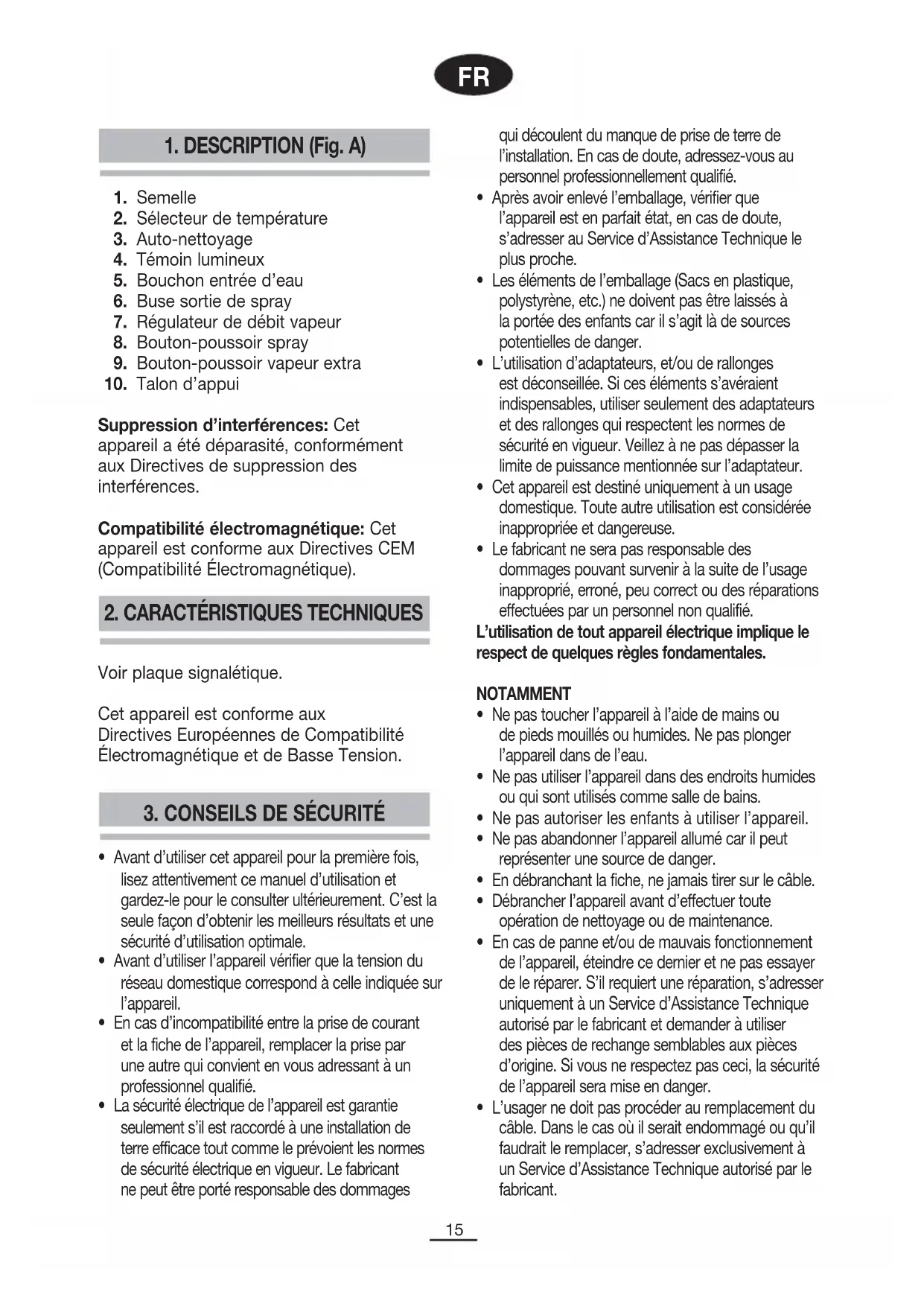 2. CARACTÉRISTIQUES TECHNIQUES FR Voir plaque signalétique.