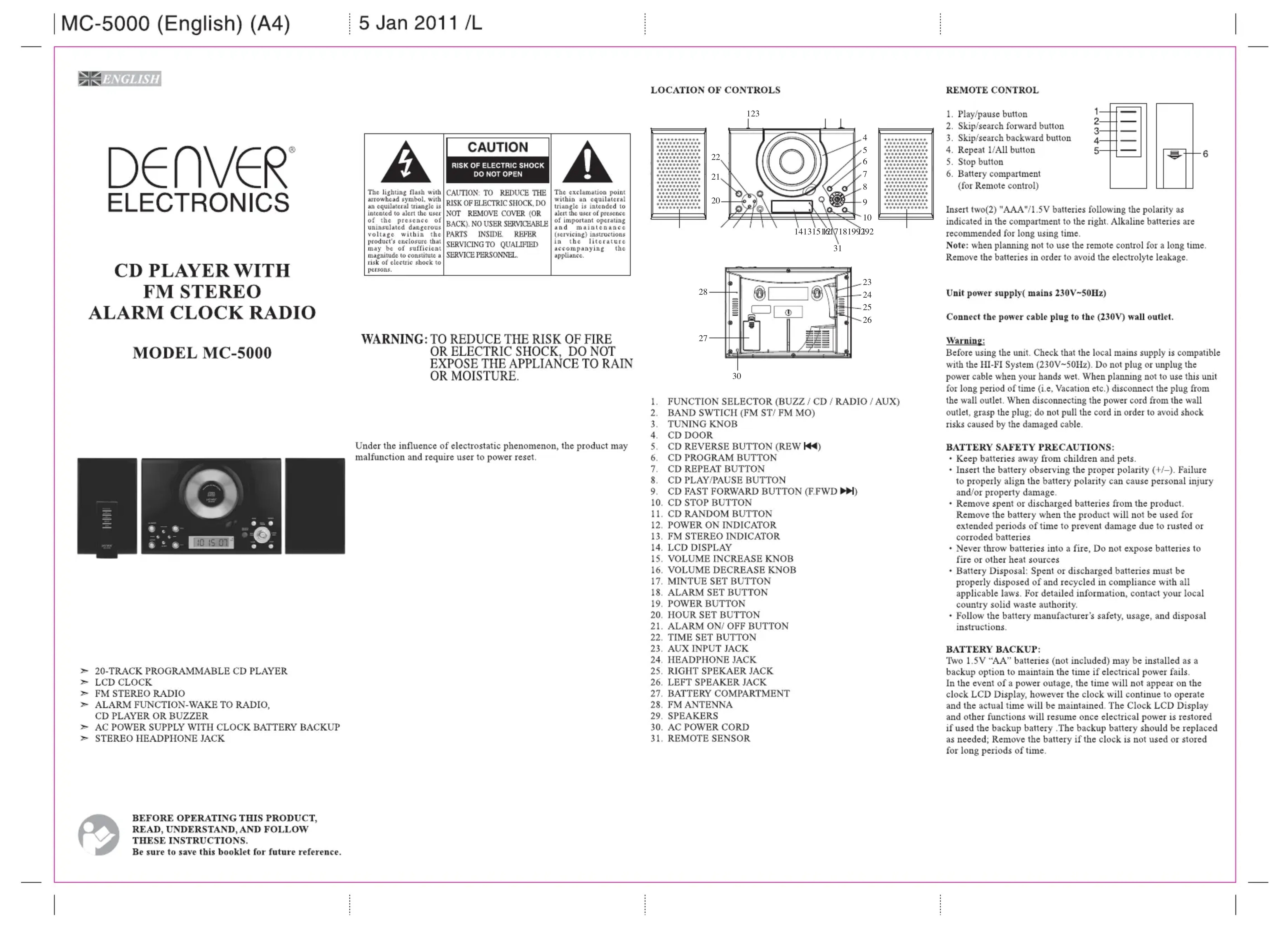 Retrouvez gratuitement la notice de l'appareil MC5000 DENVER au format PDF.