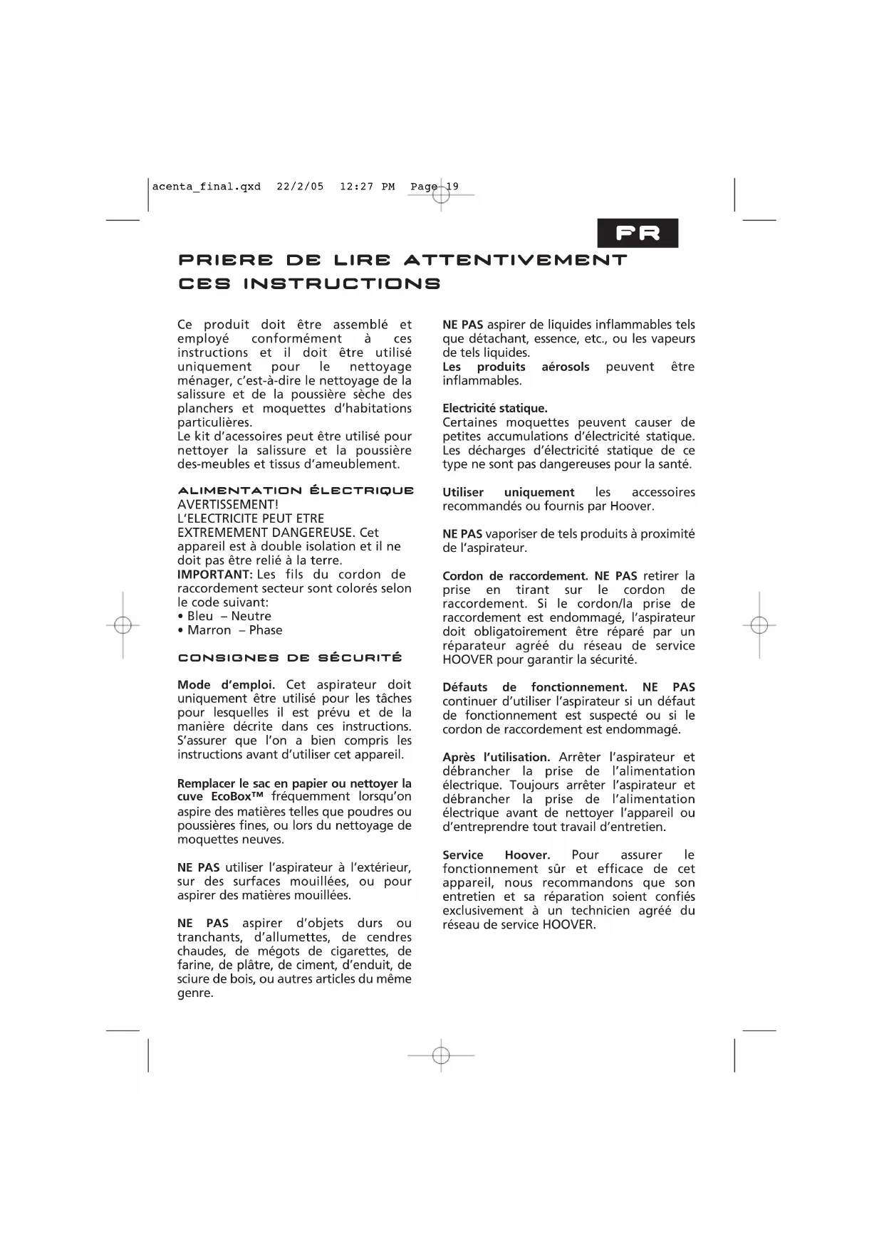 acenta_final.qxd 22/2/05 12:27 PM Page 22FR EcoBox™ est un produit Hoover unique en son genre. Il est fabriqué dans un