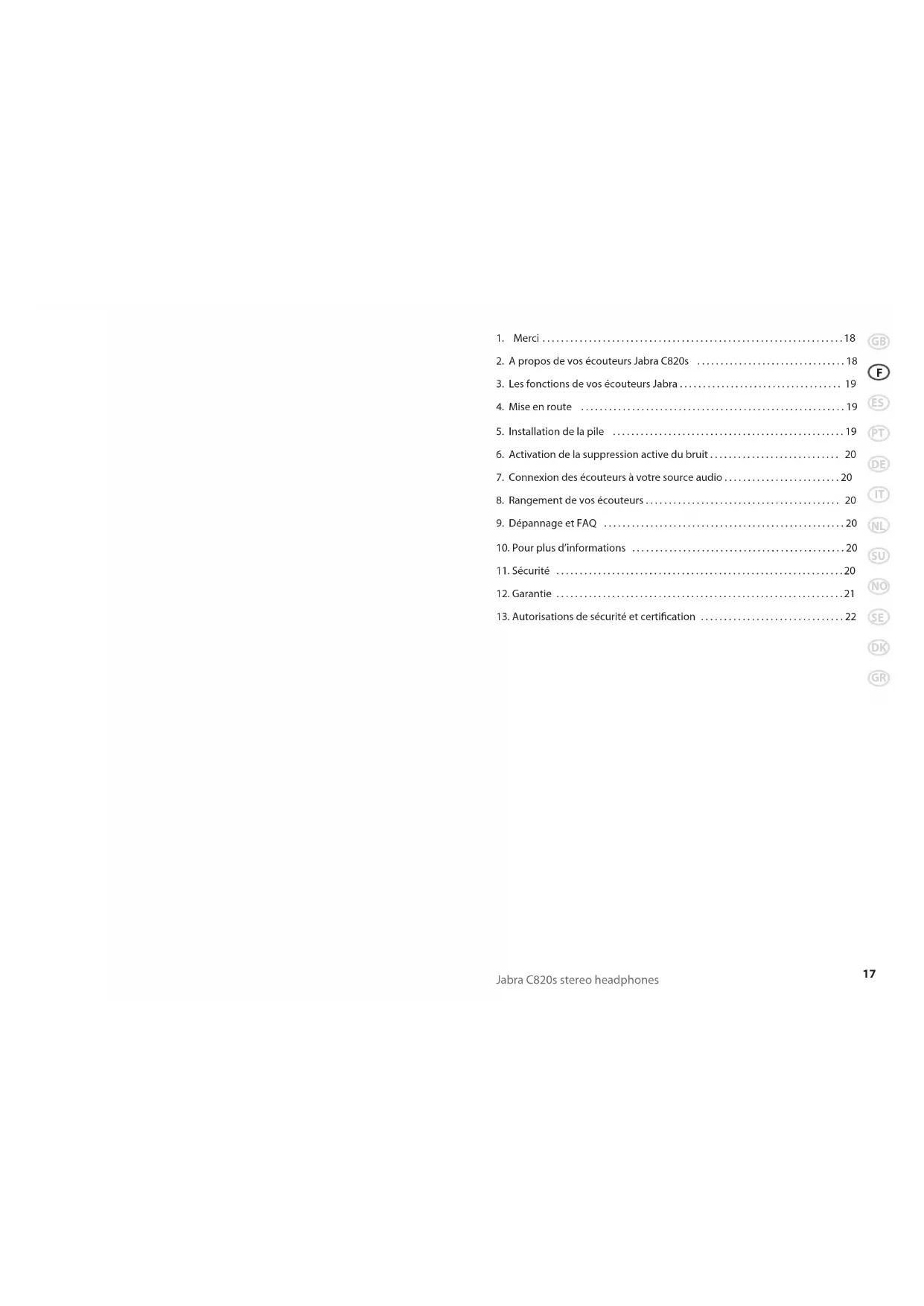 GB F ES PT DE IT NL SU NO SE DK GR Jabra C820s stereo headphones