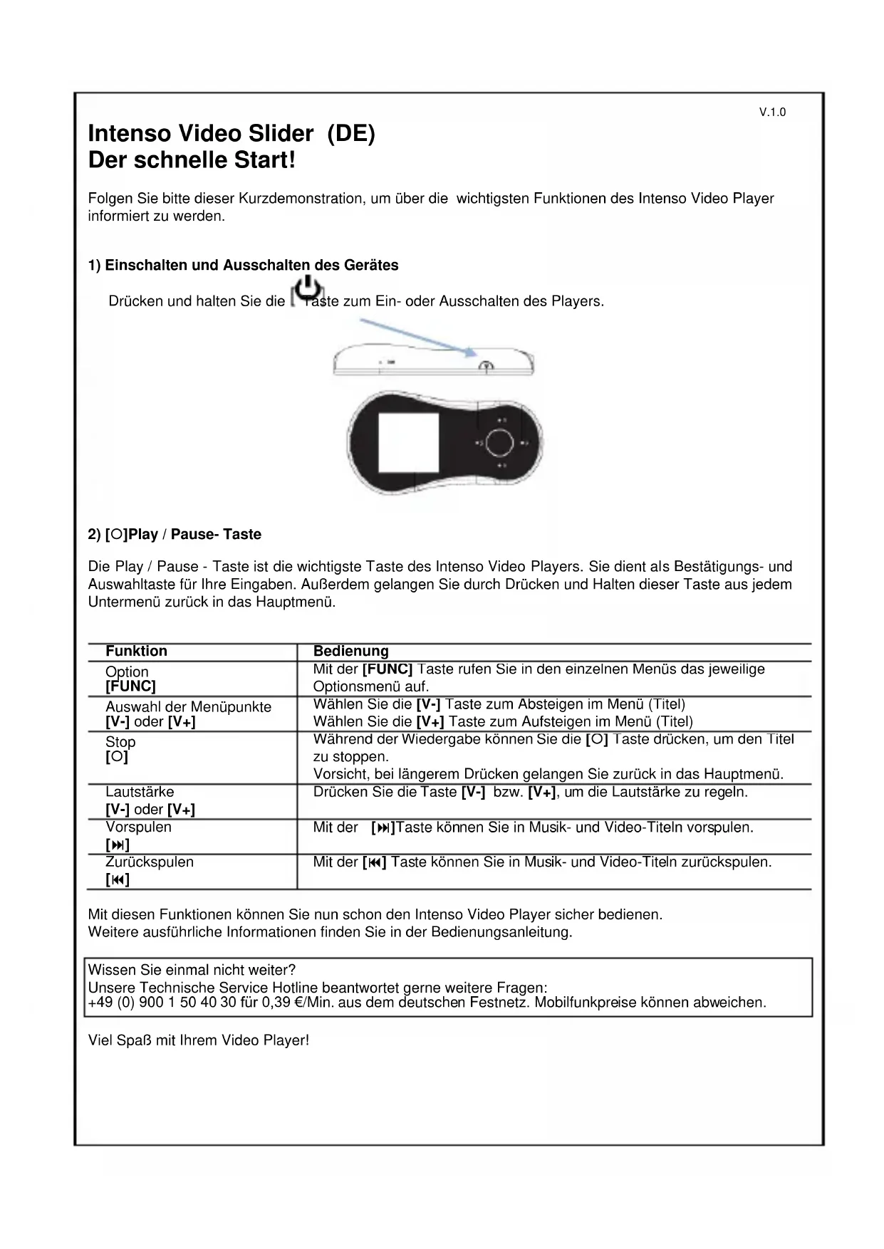 Video Slider - Lecteur multimédia INTENSO - Notice d'utilisation et mode d'emploi gratuit