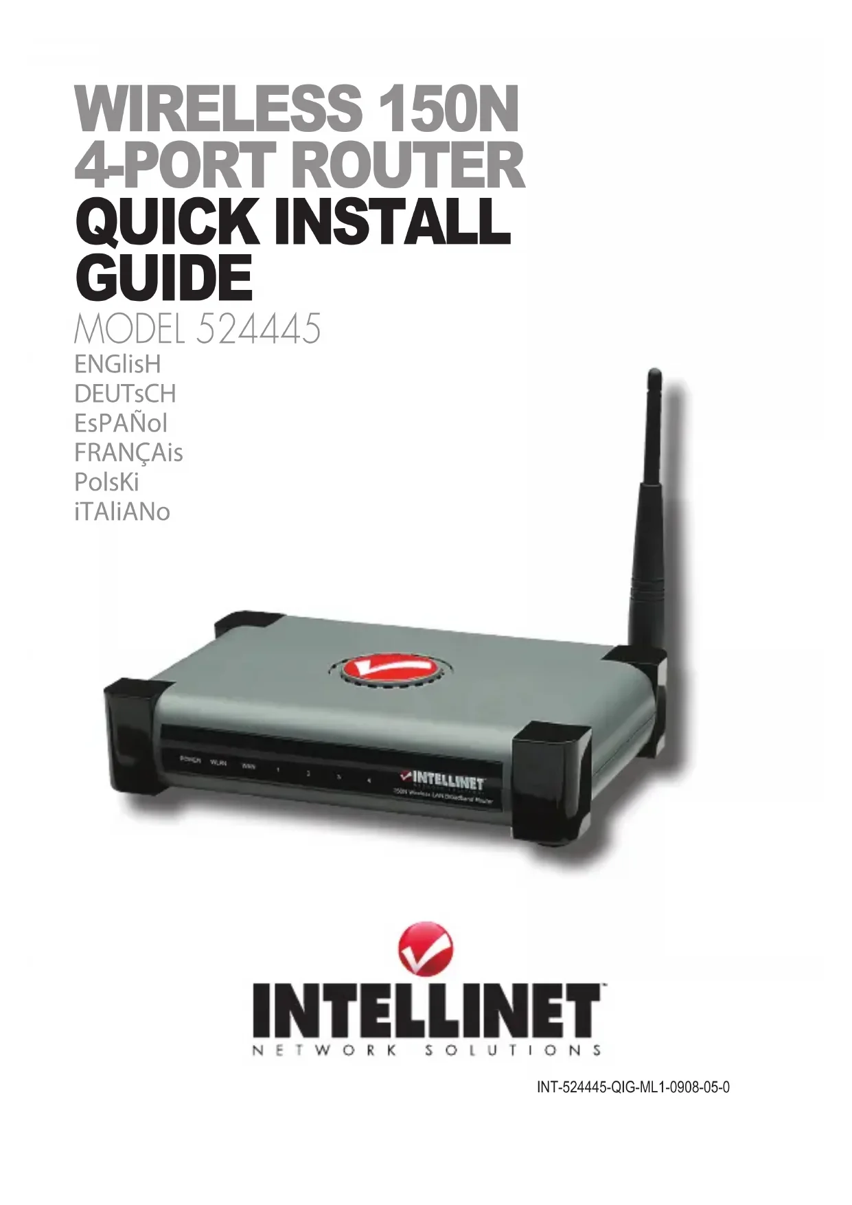 Merci d'avoir acheté l'INTELLINET NETWoRK solUTioNs ^m Routeurs sans fil 4 ports 150N, modele 524445.