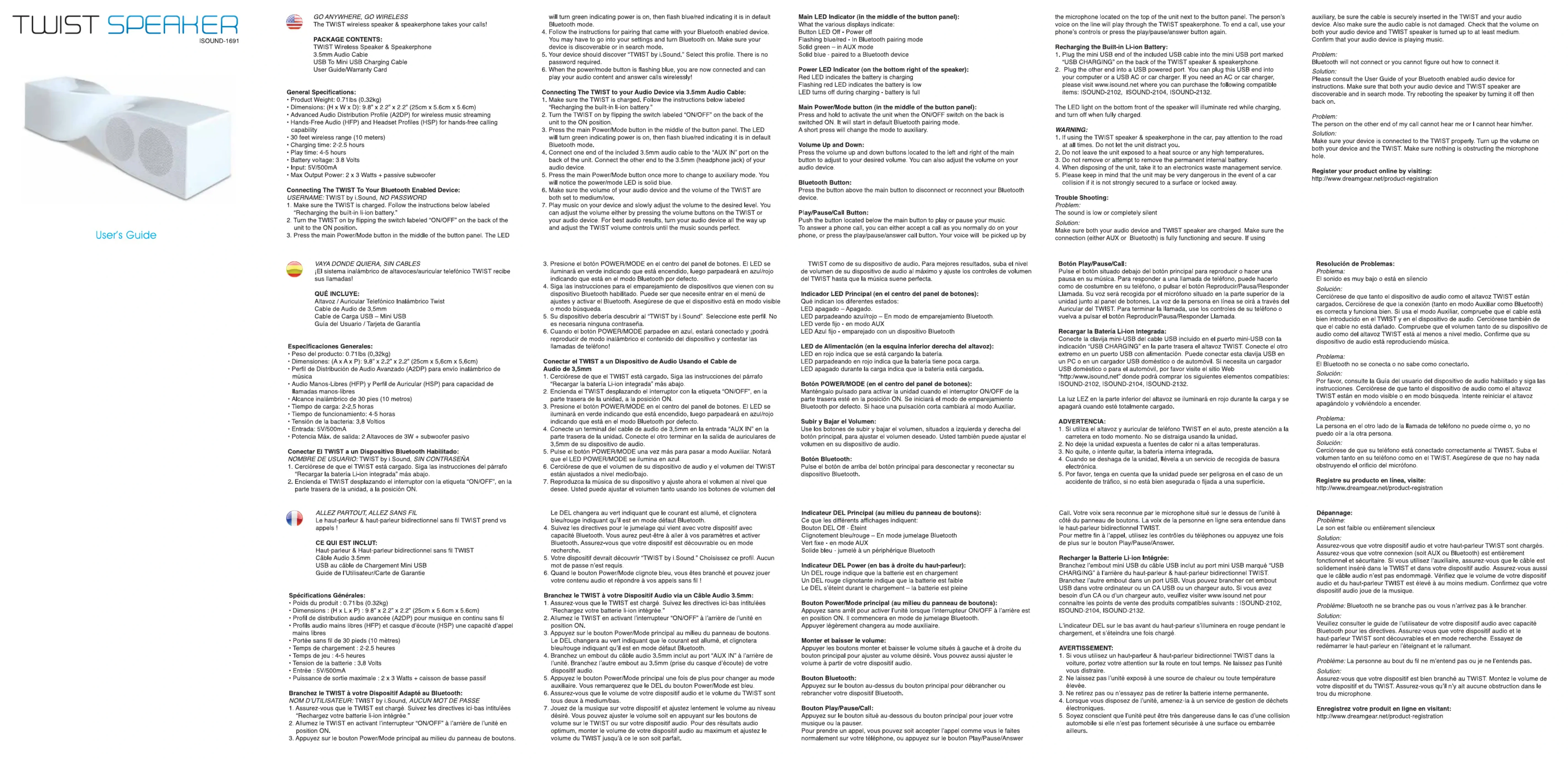 volume sur le TWIST ou sur toute disposif audio. Pour des résultats audio