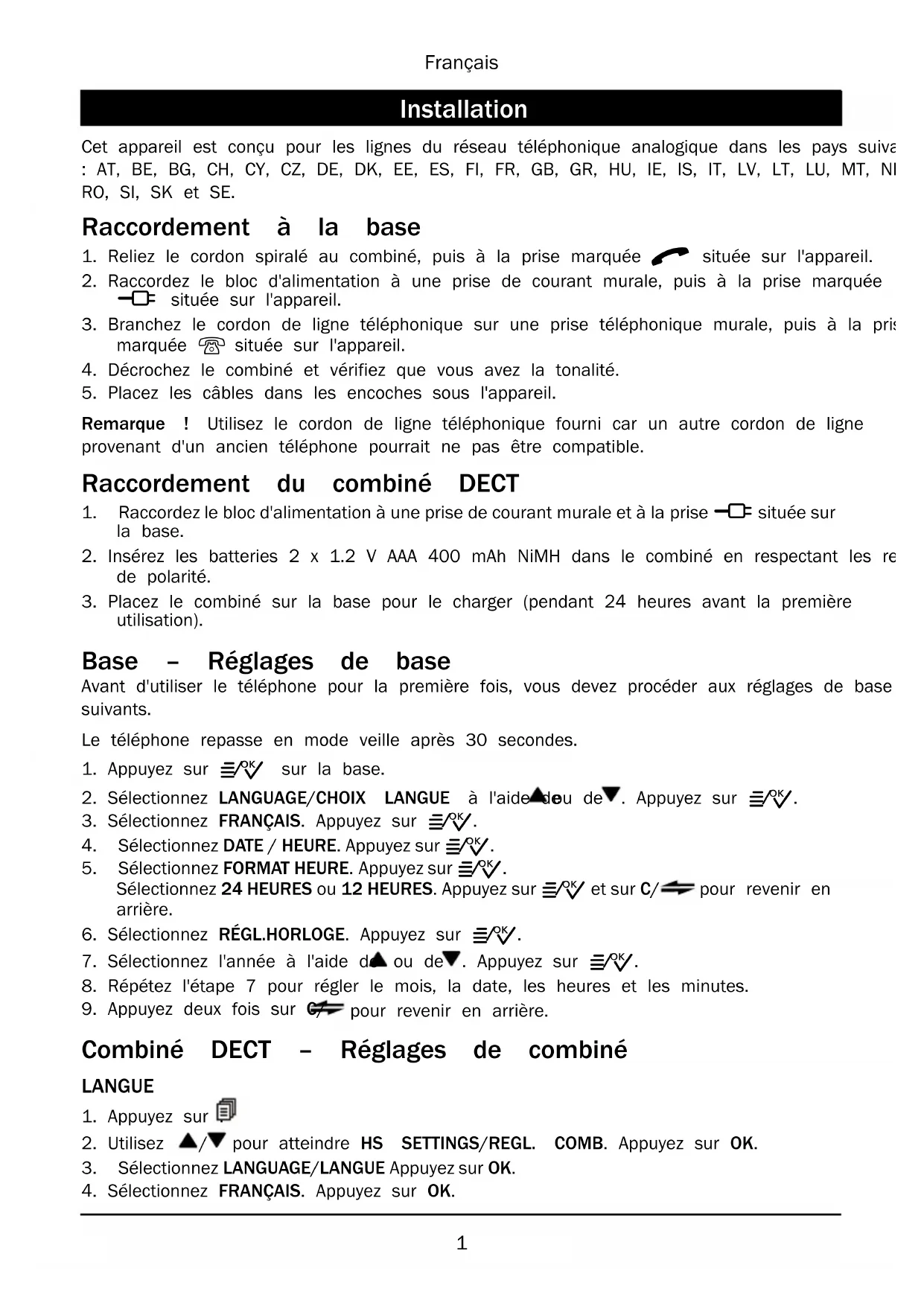 Raccordement du combiné DECT 1