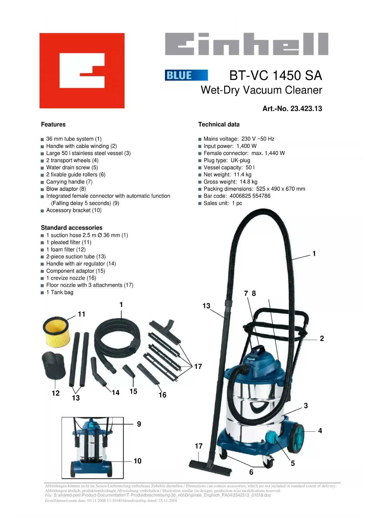 BTVC 1450 SA - Aspirateur EINHELL - Notice d'utilisation et mode d'emploi gratuit