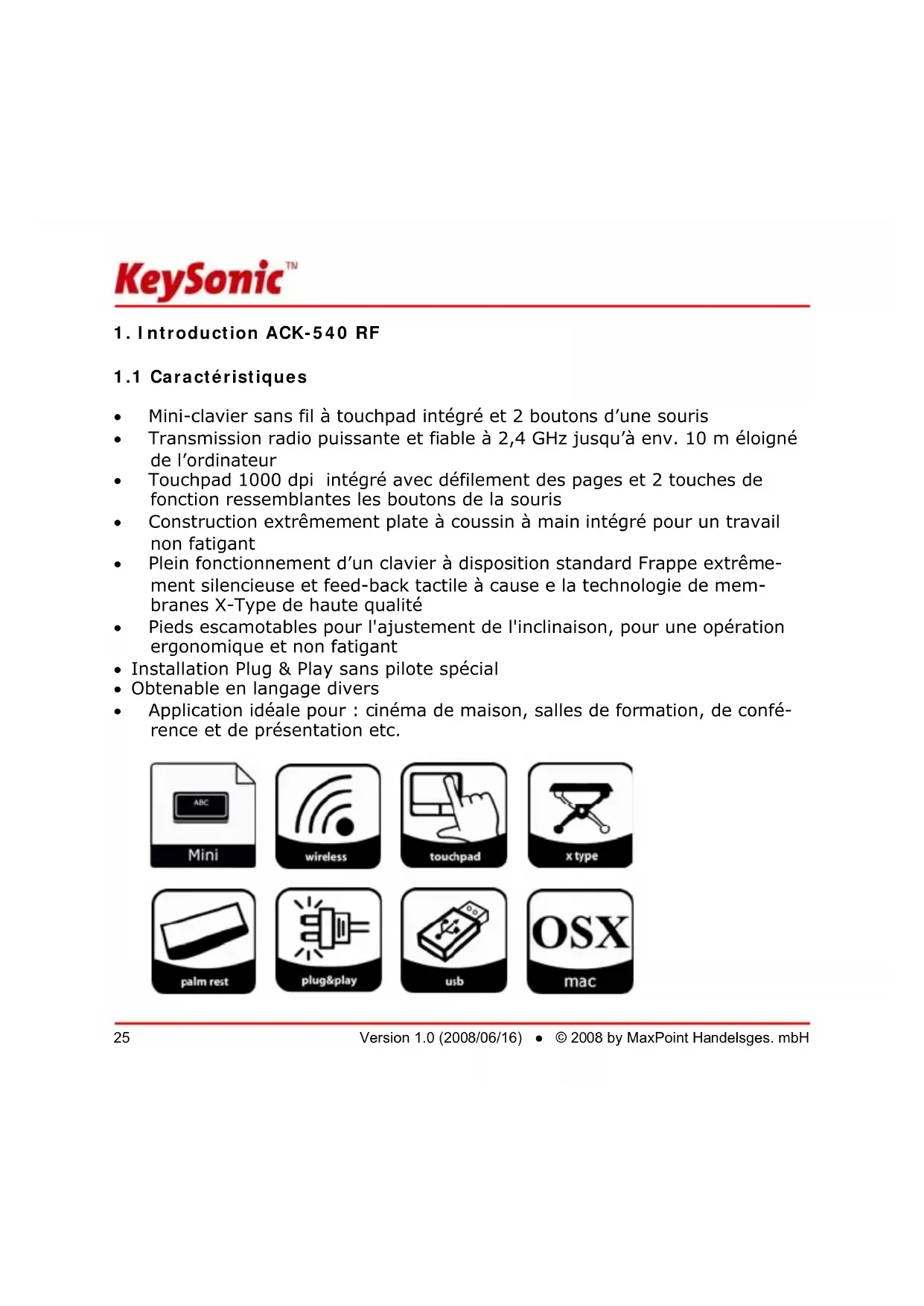 ACK540 MACRF - Clavier KeySonic - Notice d'utilisation et mode d'emploi gratuit