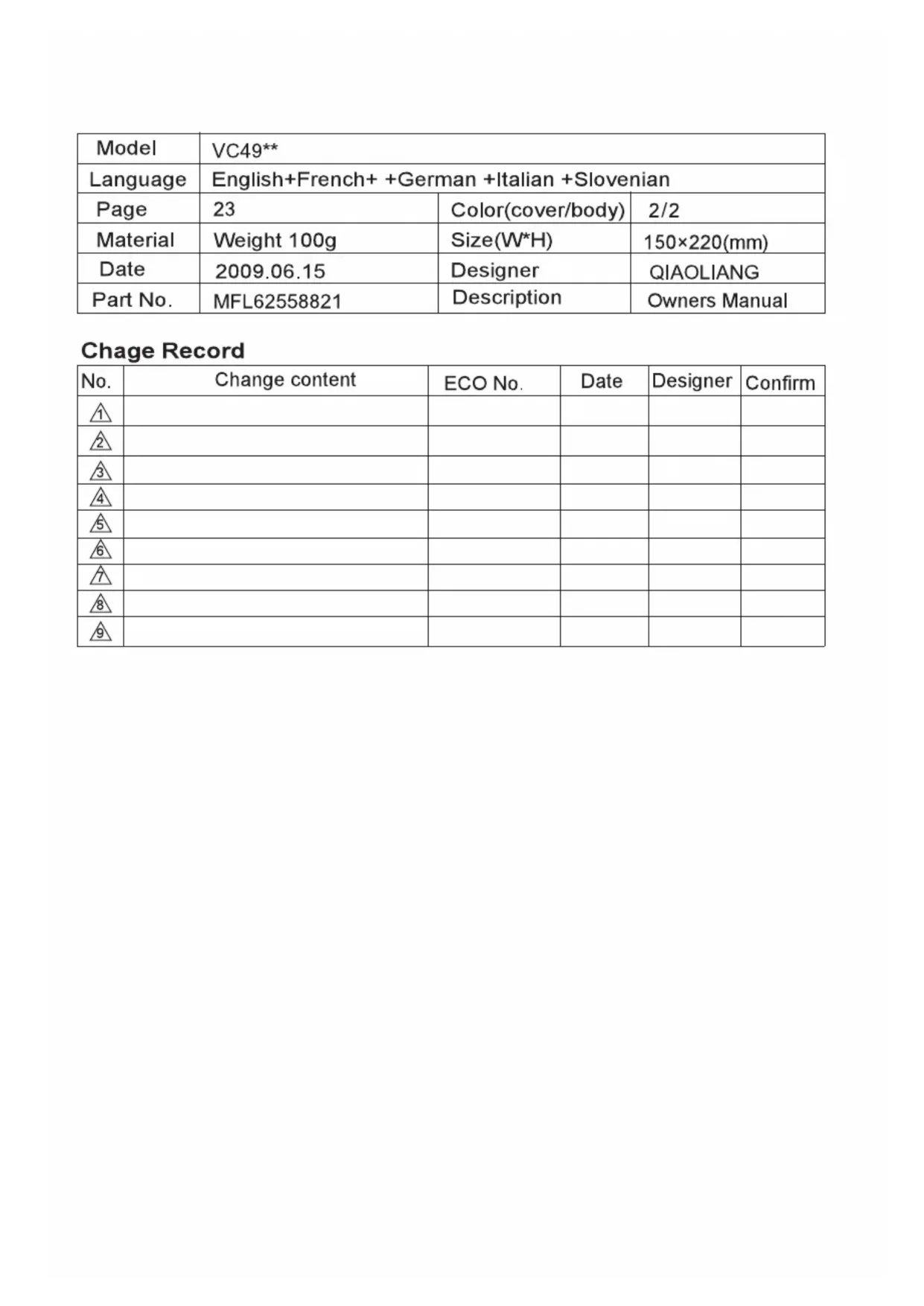 Téléchargez la notice de votre Aspirateur au format PDF gratuitement ! Retrouvez votre notice VC4916NRTQ - LG et reprennez votre appareil électronique en main. Sur cette page sont publiés tous les documents nécessaires à l'utilisation de votre appareil VC4916NRTQ de la marque LG.