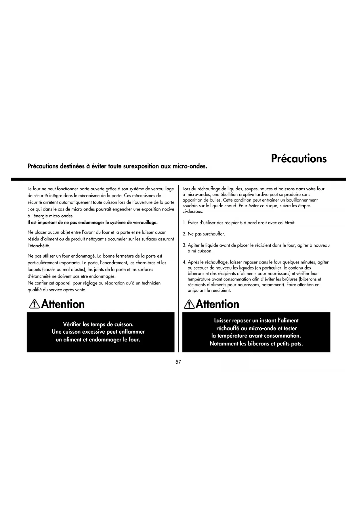 FRANÇAISPrécautions destinées à éviter toute surexposition aux micro-ondes.
