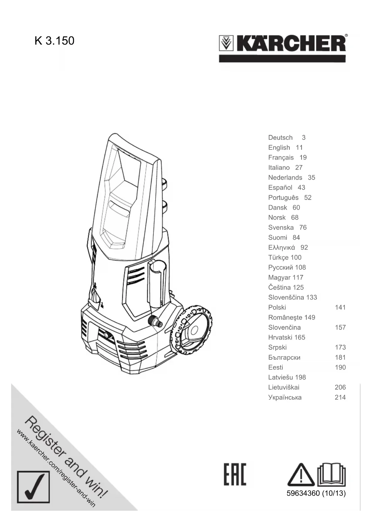 Retrouvez gratuitement la notice de l'appareil K 3.150 M Plus Kärcher au format PDF.