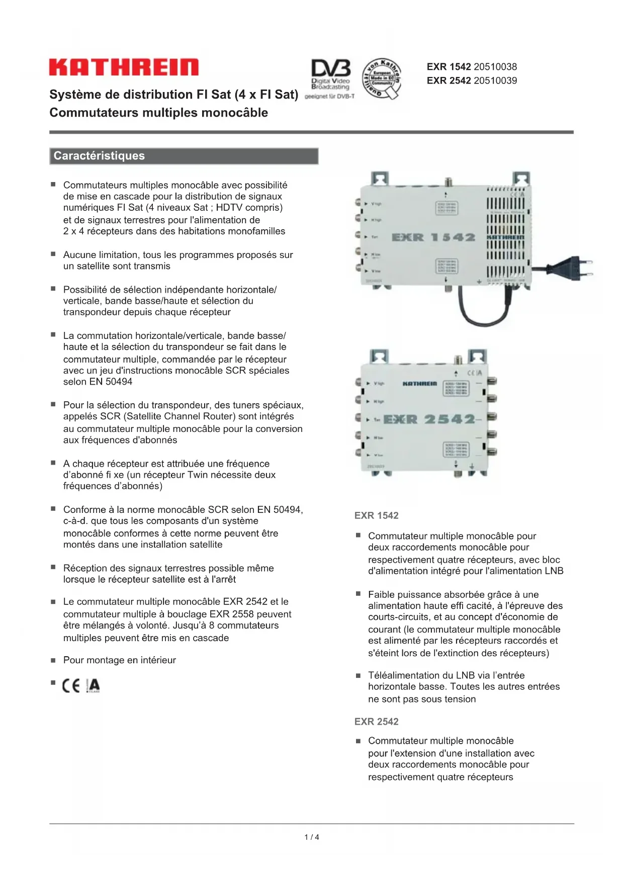 Retrouvez gratuitement la notice de l'appareil EXR 1542 KATHREIN au format PDF.