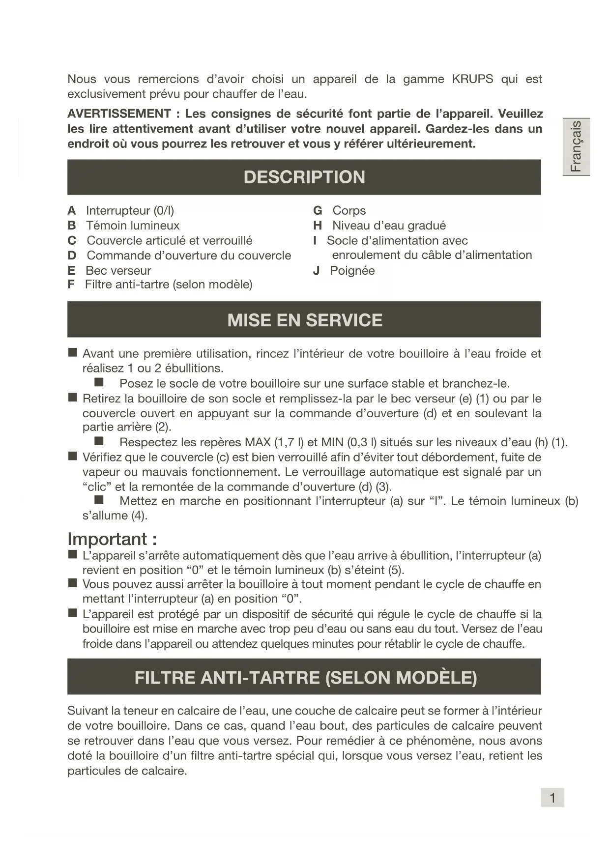 Nous vous remercions d’avoir choisi un appareil de la gamme KRUPS qui est