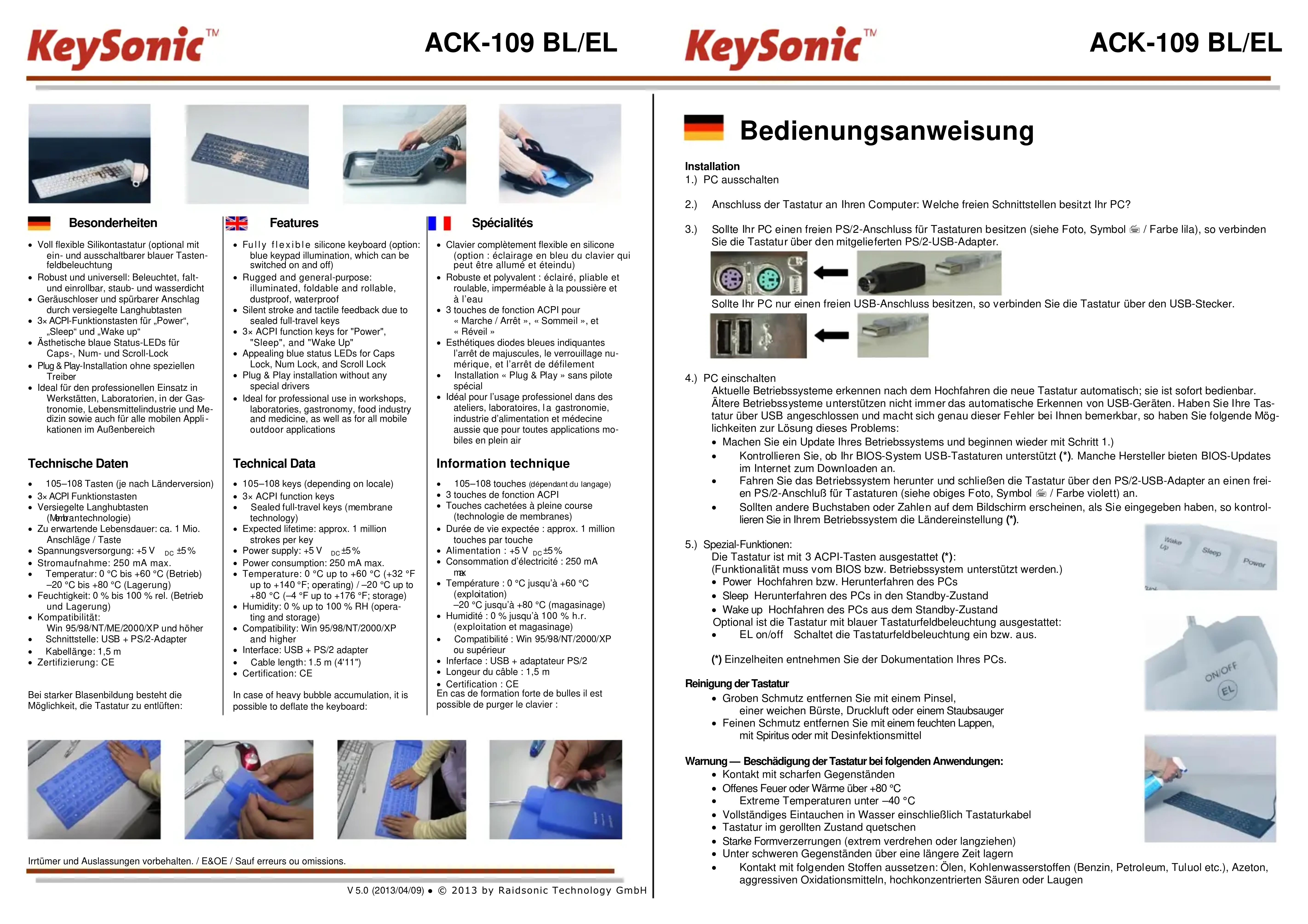 Retrouvez gratuitement la notice de l'appareil ACK109 BL KeySonic au format PDF.