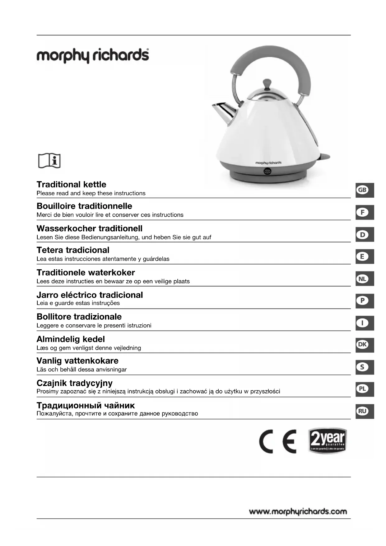43687 - Bouilloire MORPHY RICHARDS - Notice d'utilisation et mode d'emploi gratuit