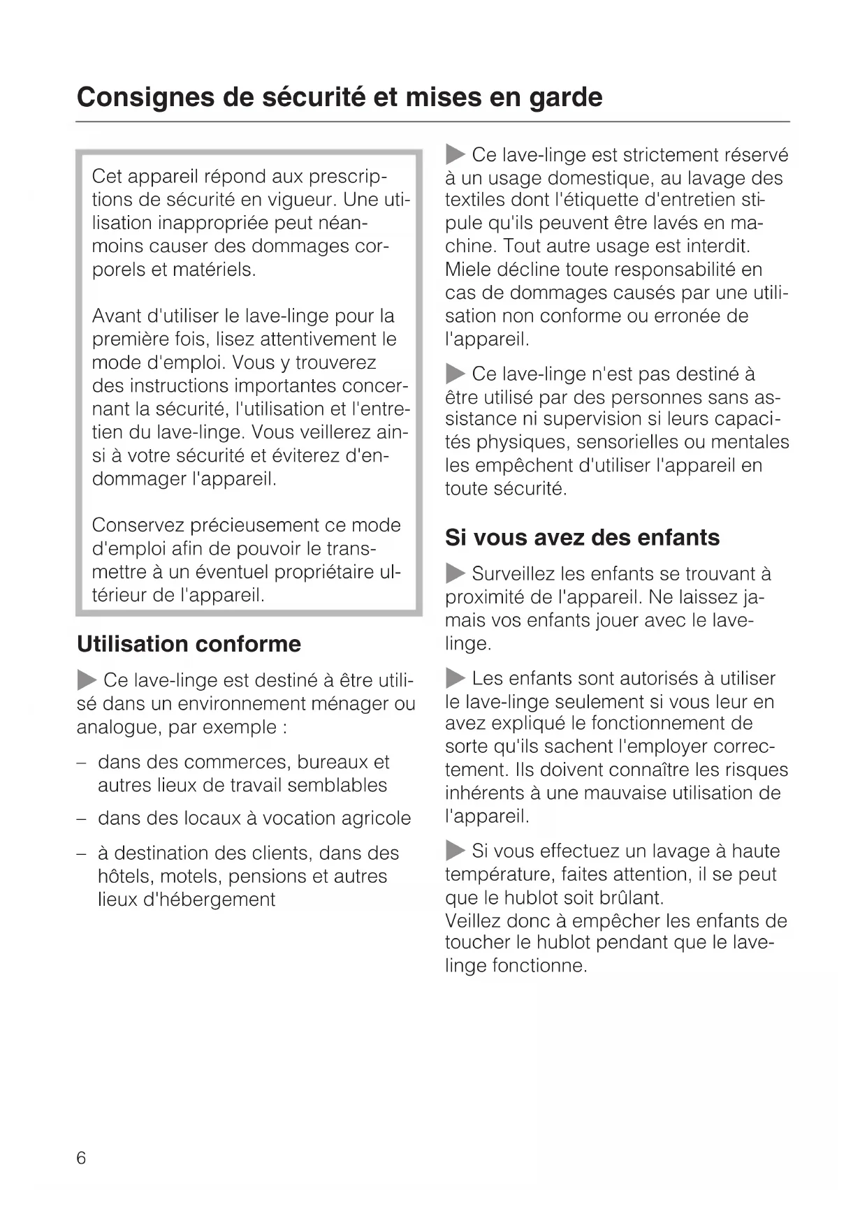Consignes de sécurité et mises en garde 6