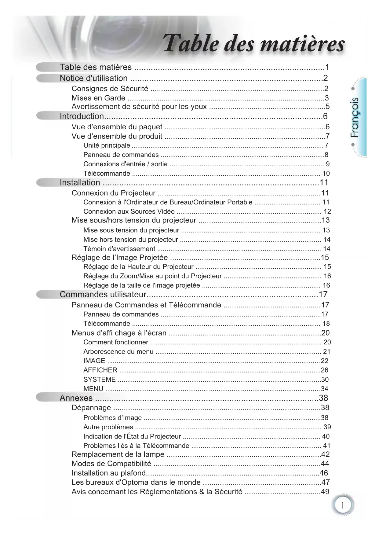 HD200X - Projecteur OPTOMA - Notice d'utilisation et mode d'emploi gratuit