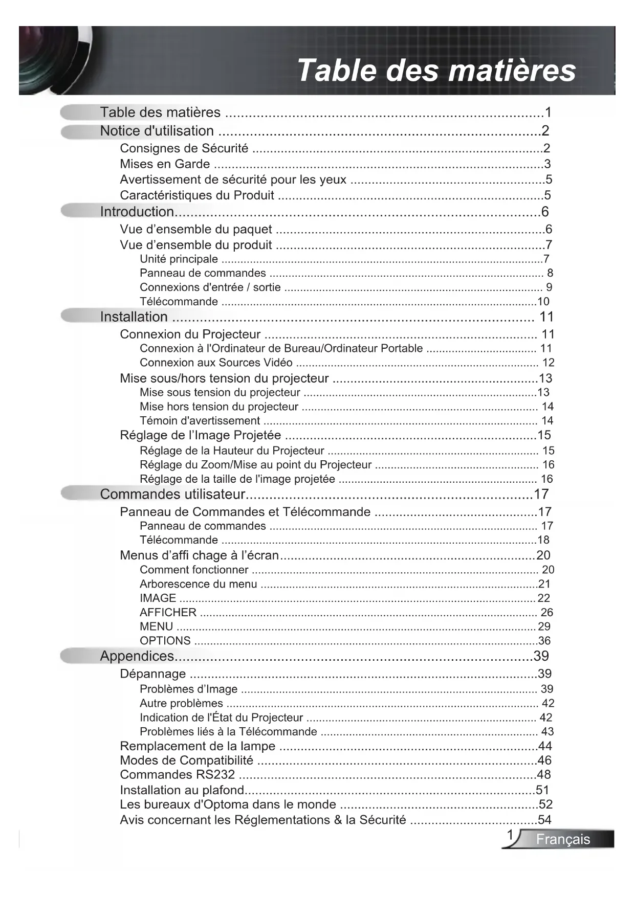 Ceci désactie la sortie VGA et le contrôle RJ45 lorsque le projecteur est en mode veille (<1W).38