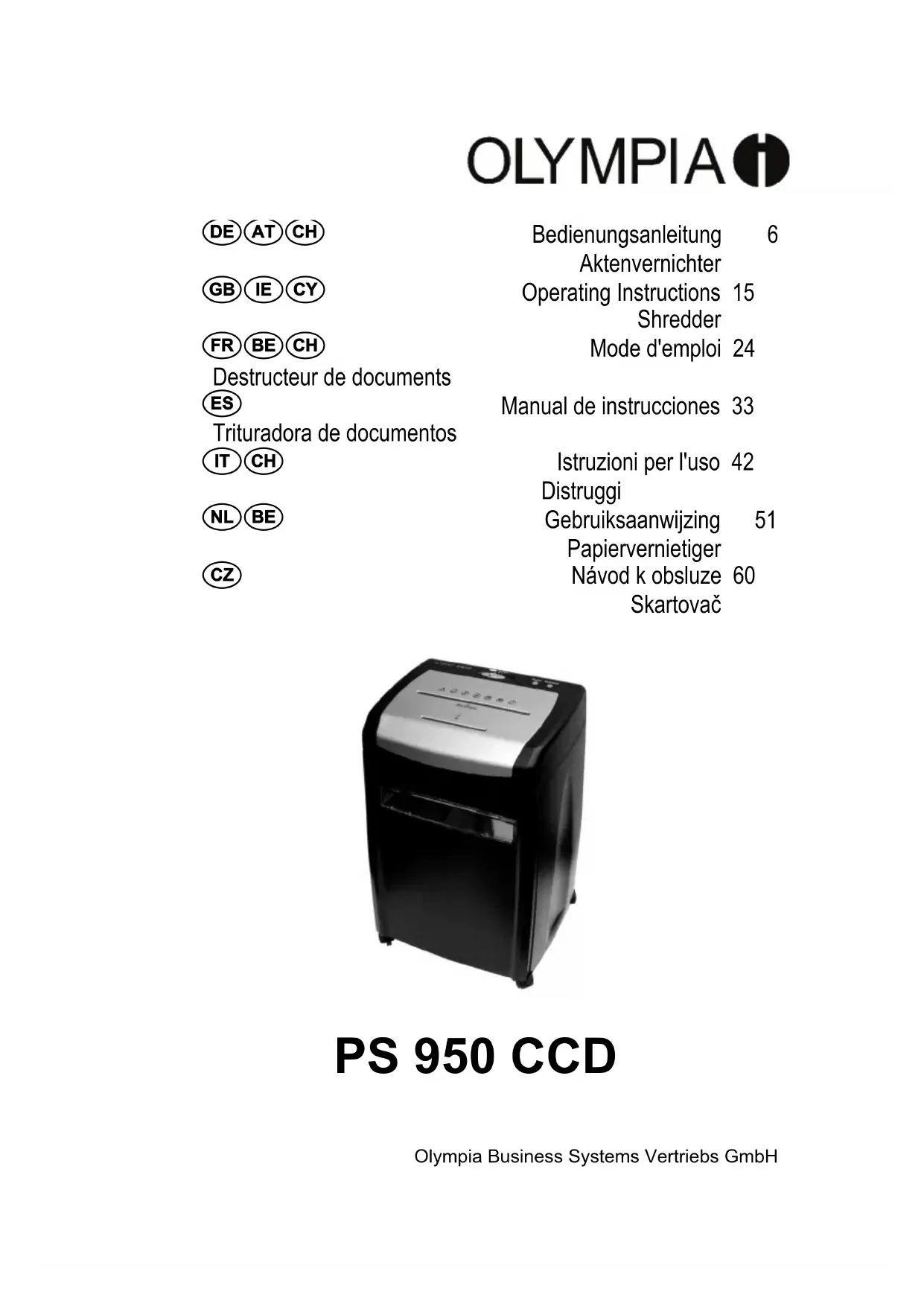 PS 950 CCD - Destructeur de document OLYMPIA - Notice d'utilisation et mode d'emploi gratuit