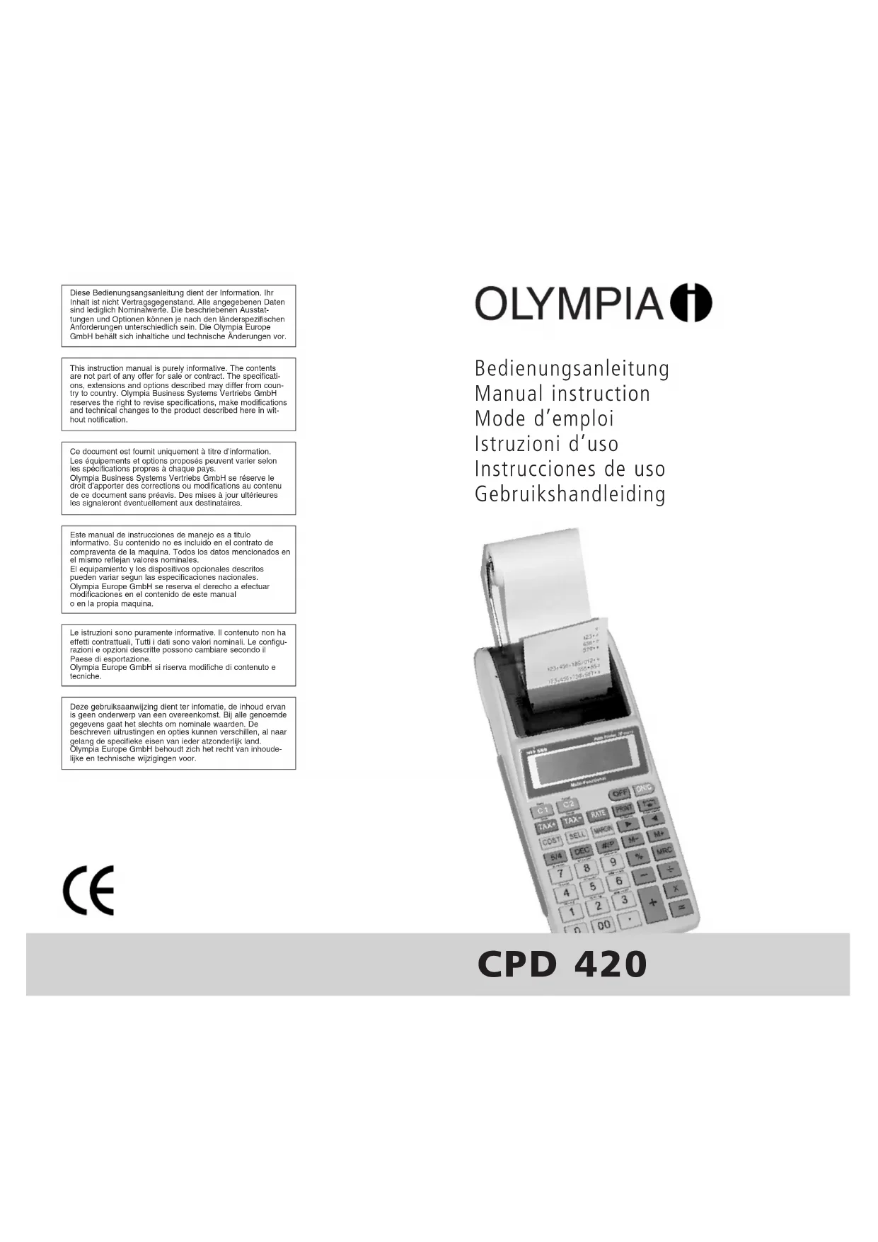 Retrouvez gratuitement la notice de l'appareil CPD 420 OLYMPIA au format PDF.