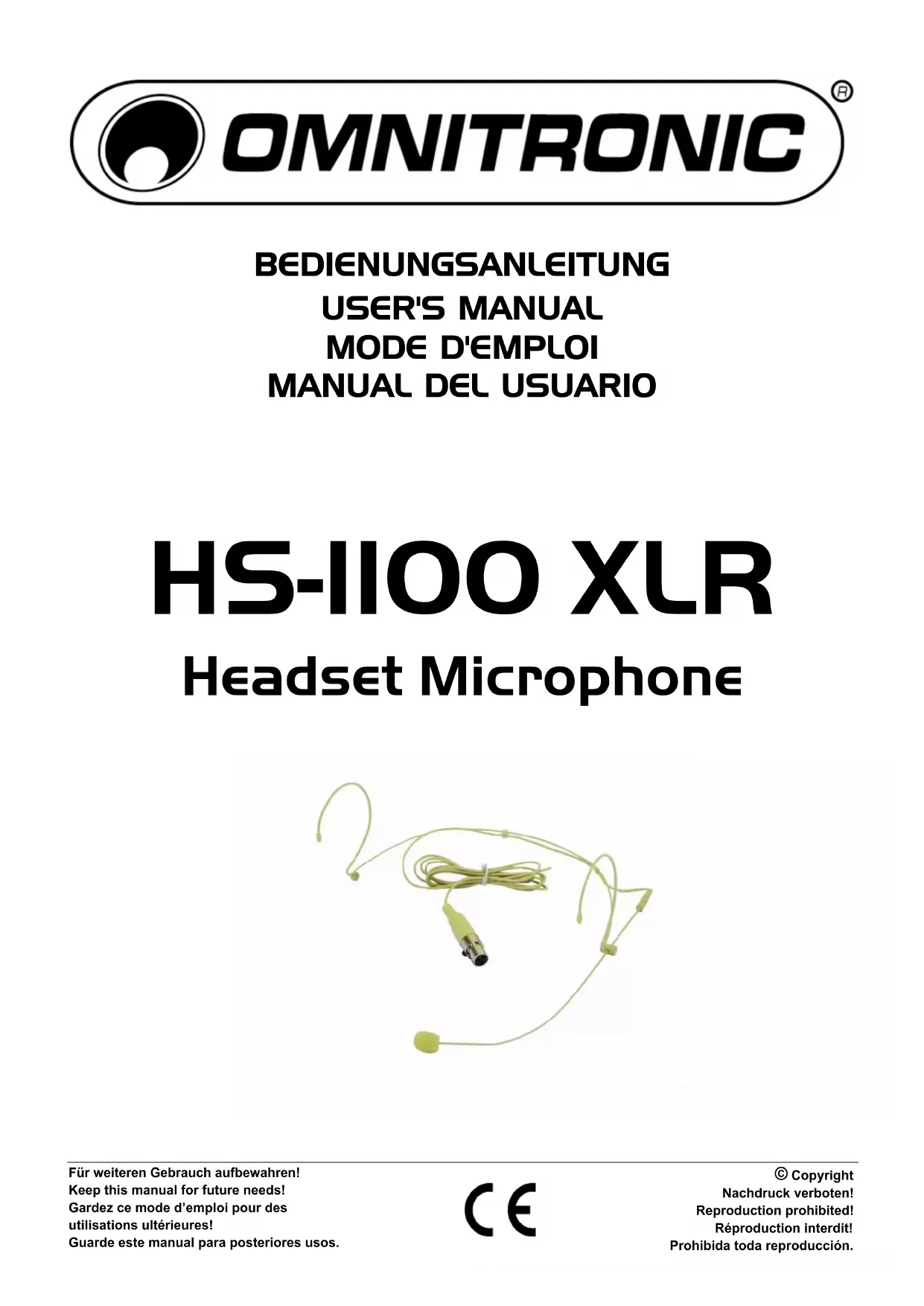 Retrouvez gratuitement la notice de l'appareil HS1100 XLR Omnitronic au format PDF.