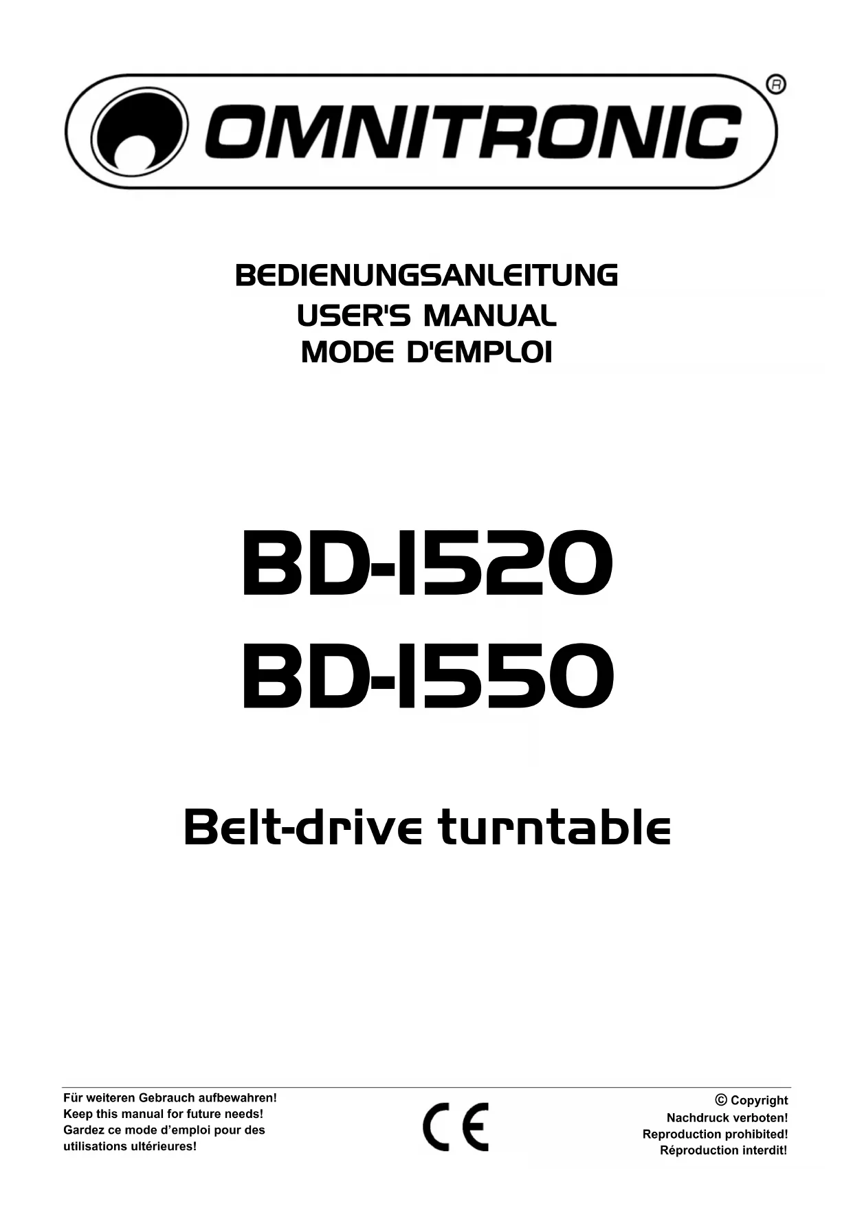 Retrouvez gratuitement la notice de l'appareil BD1550 Omnitronic au format PDF.