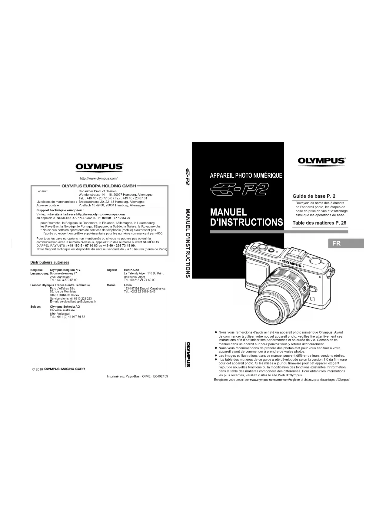 EP2 Pancake Kit - Appareil photo OLYMPUS - Notice d'utilisation et mode d'emploi gratuit