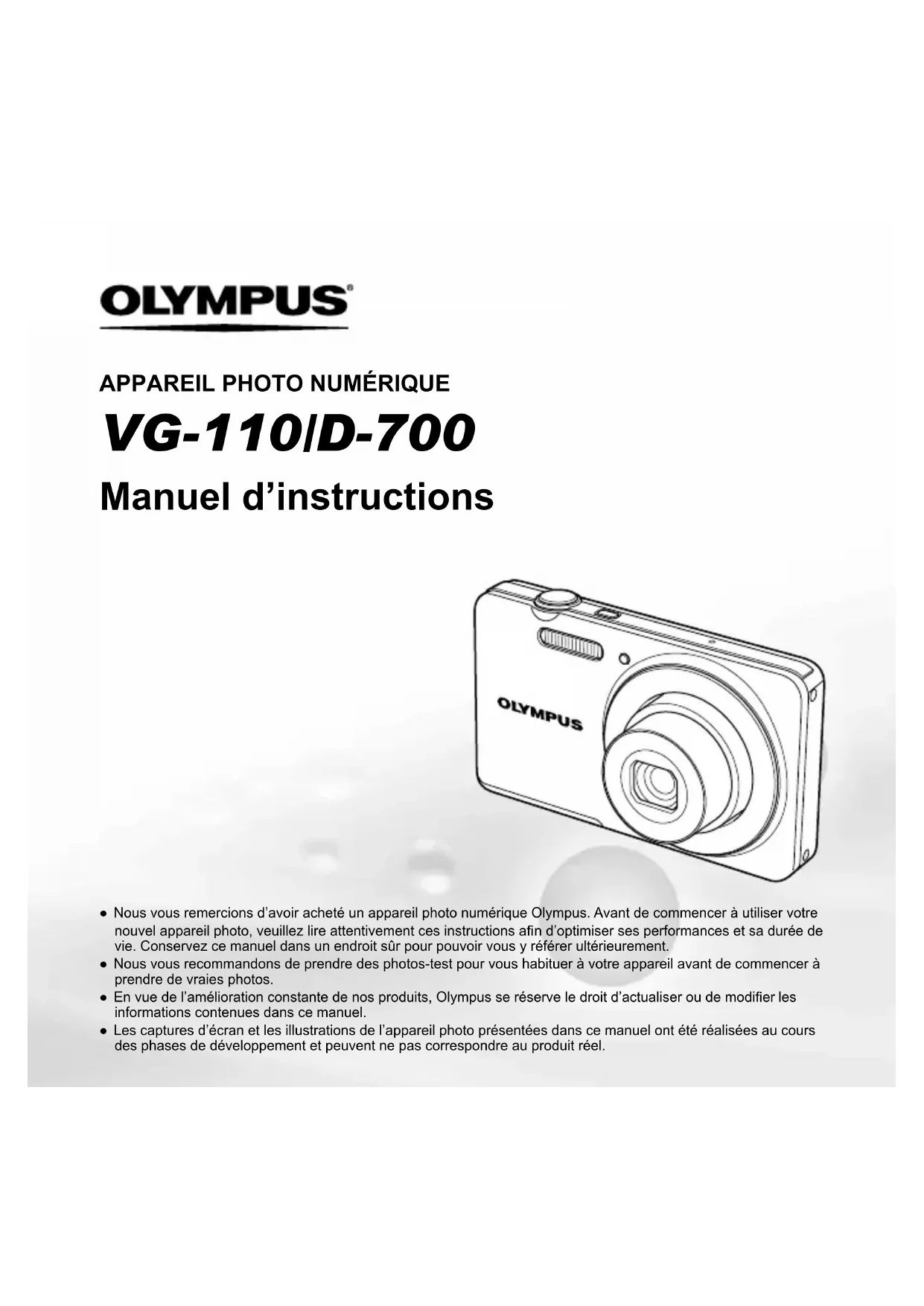 N4301692 - Appareil photo OLYMPUS - Notice d'utilisation et mode d'emploi gratuit