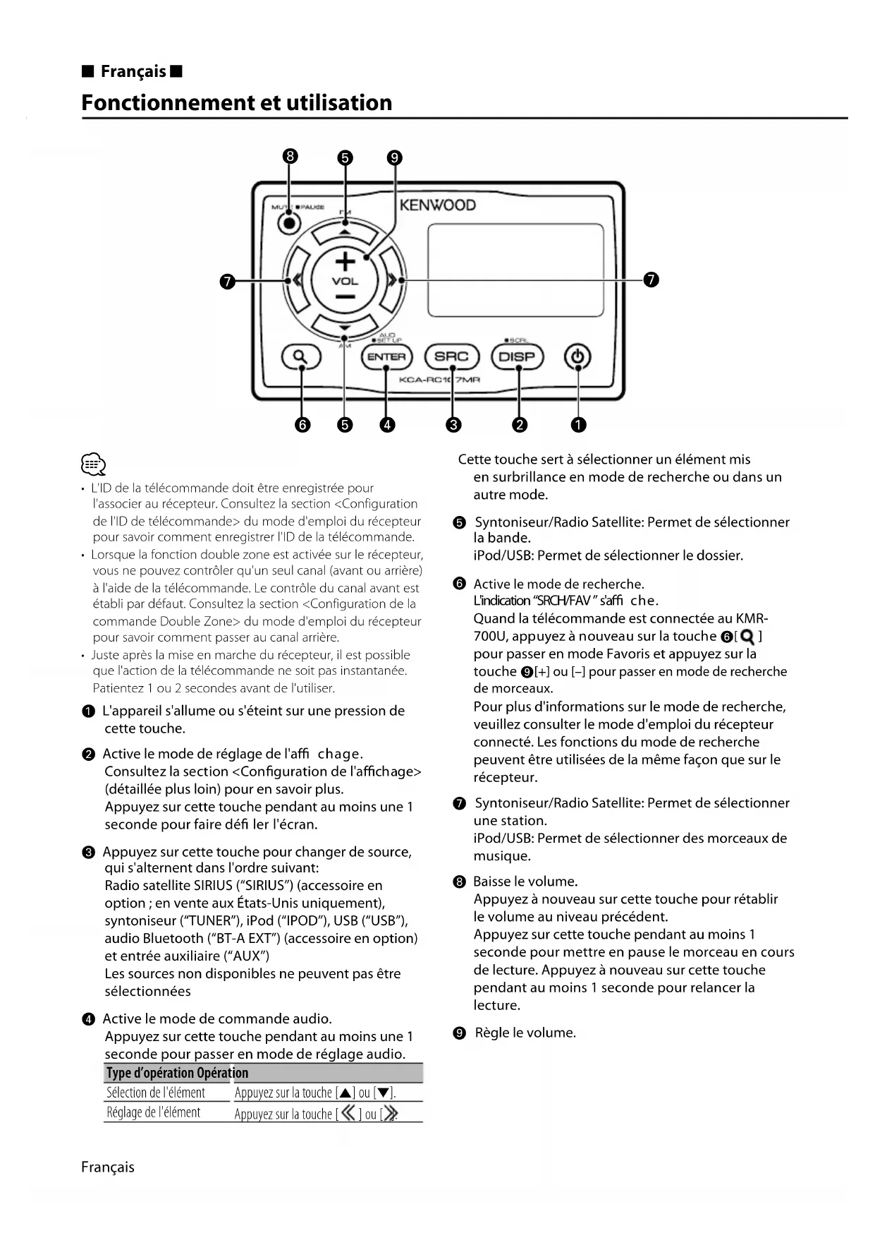 MODE D'EMPLOI KCARC107MR KENWOOD