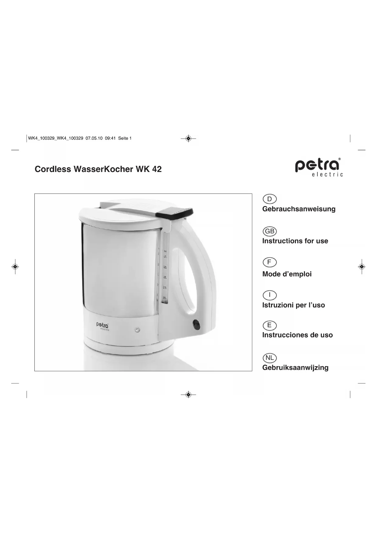 WK 42.00 - Bouilloire Petra Electric - Notice d'utilisation et mode d'emploi gratuit