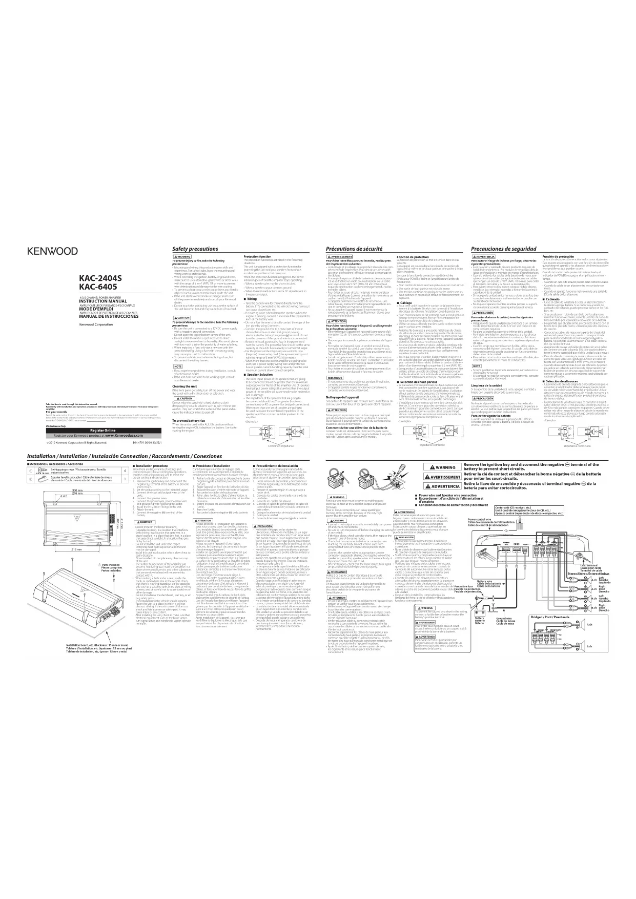 Retrouvez gratuitement la notice de l'appareil KAC6405 KENWOOD au format PDF.