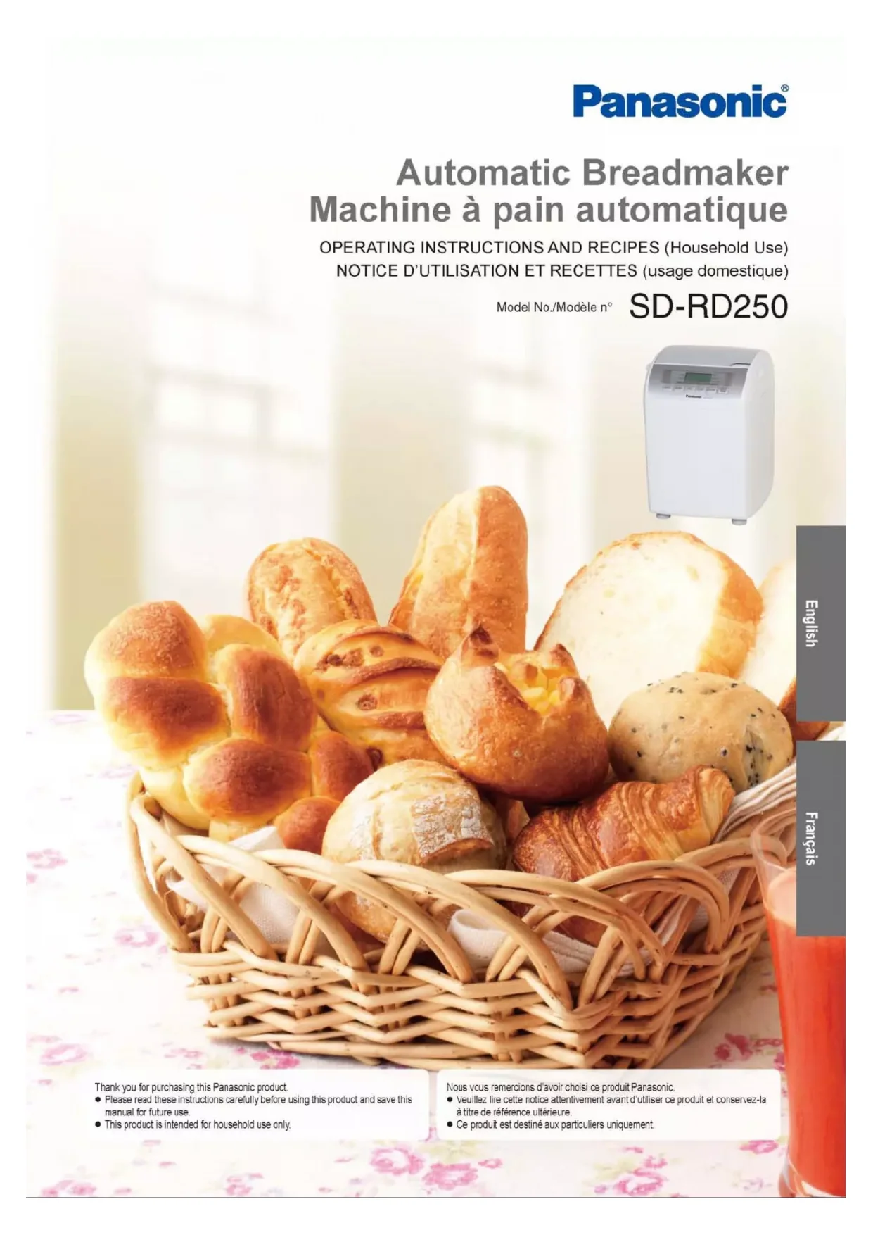 SDRD250 - Machine à pain PANASONIC - Notice d'utilisation et mode d'emploi gratuit