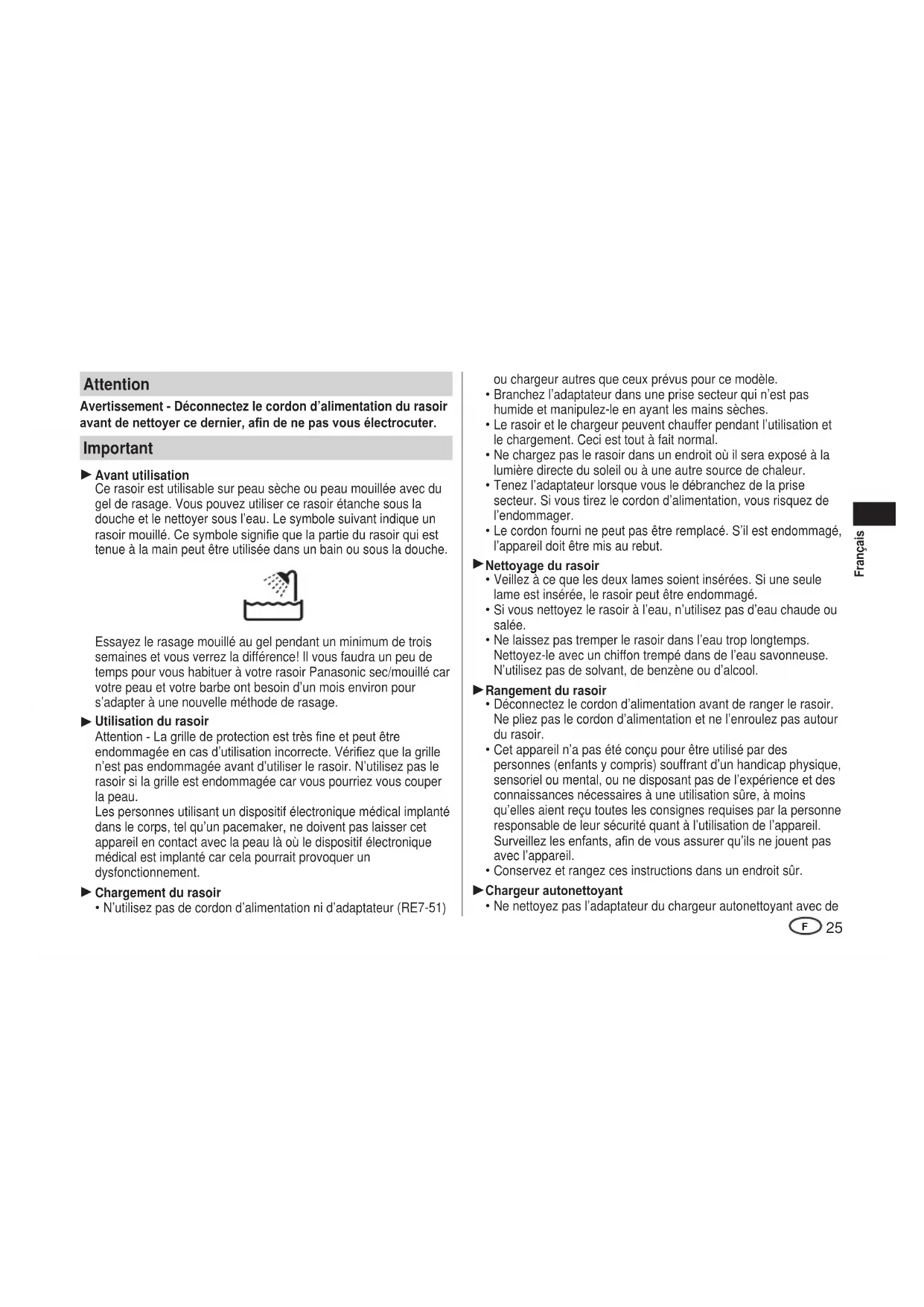 Ne laissez pas tremper le rasoir dans l’eau trop longtemps.