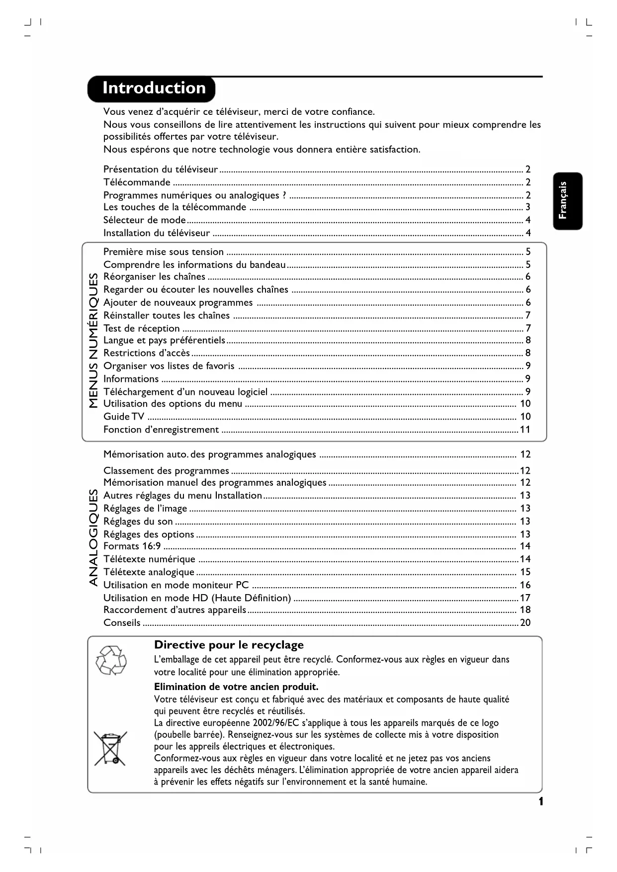 Pour la réception des chaînes TV, votre téléviseur est équipé de 2 tuners; l’un pour les programmes numériques,