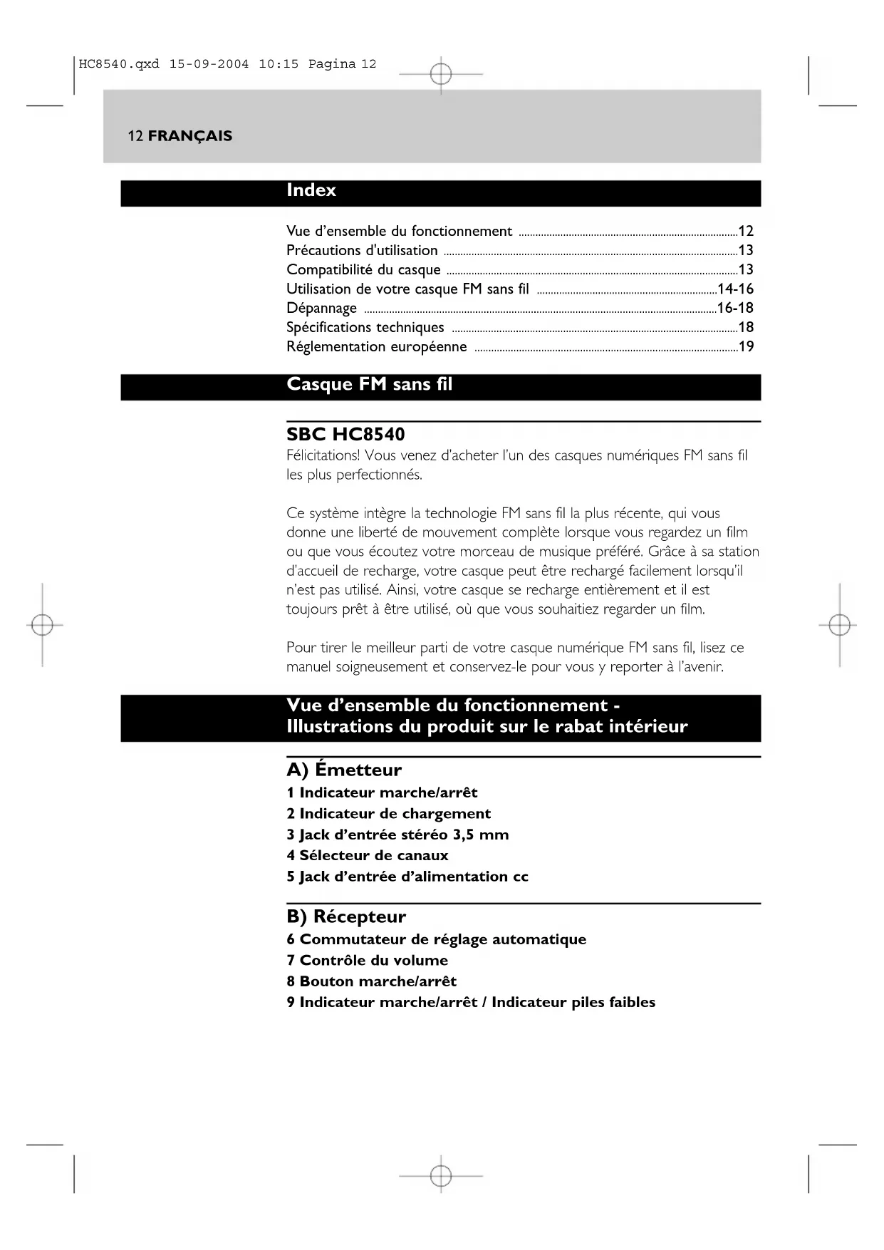 HC8540.qxd 15-09-2004 10:15 Pagina 1314 FRANÇAIS Utilisation de votre système de casque FM sans fil