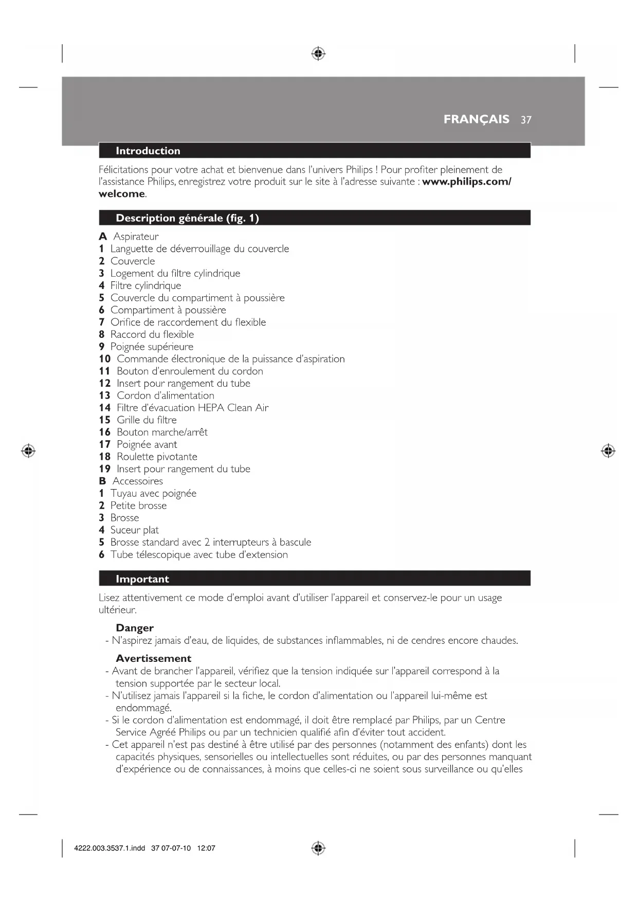 4222.003.3537.1.indd 37 07-07-10 12:07n’aient reçu des instructions quant à l’utilisation de l’appareil par une personne responsable de
