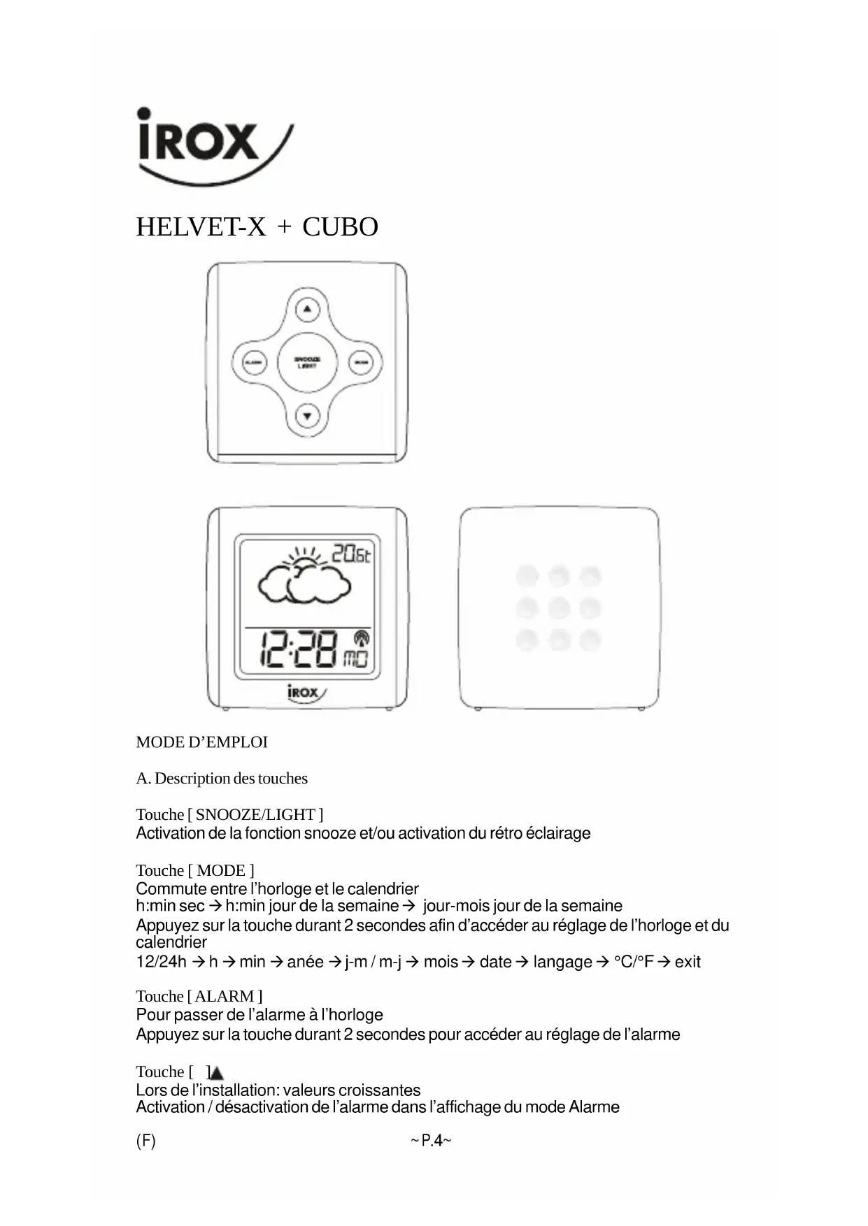HELVETX - Radio-réveil IROX - Notice d'utilisation et mode d'emploi gratuit