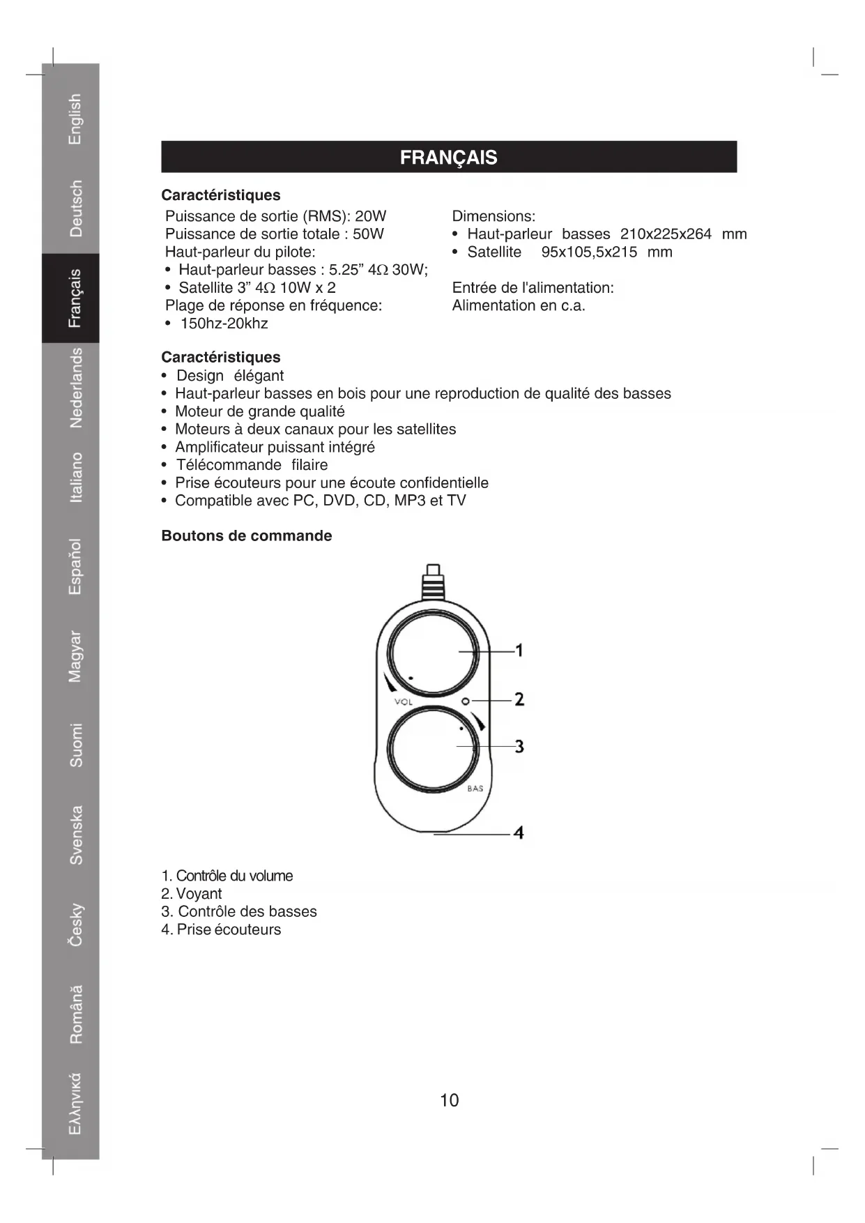 - Compatible avec PC, DVD, CD, MP3 et TV Boutons de commande