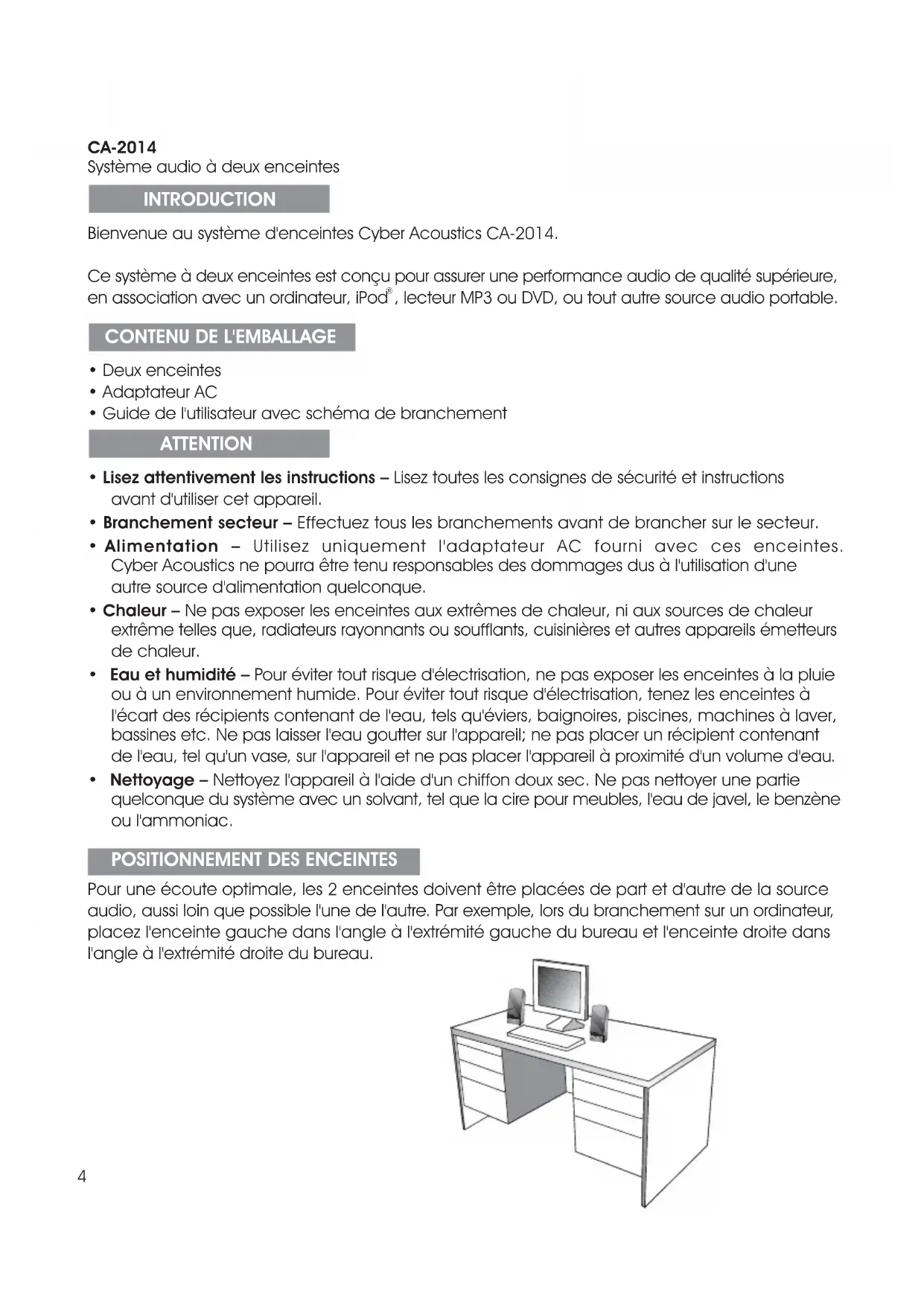 CA2014WB - Haut-parleur Cyber Acoustics - Notice d'utilisation et mode d'emploi gratuit