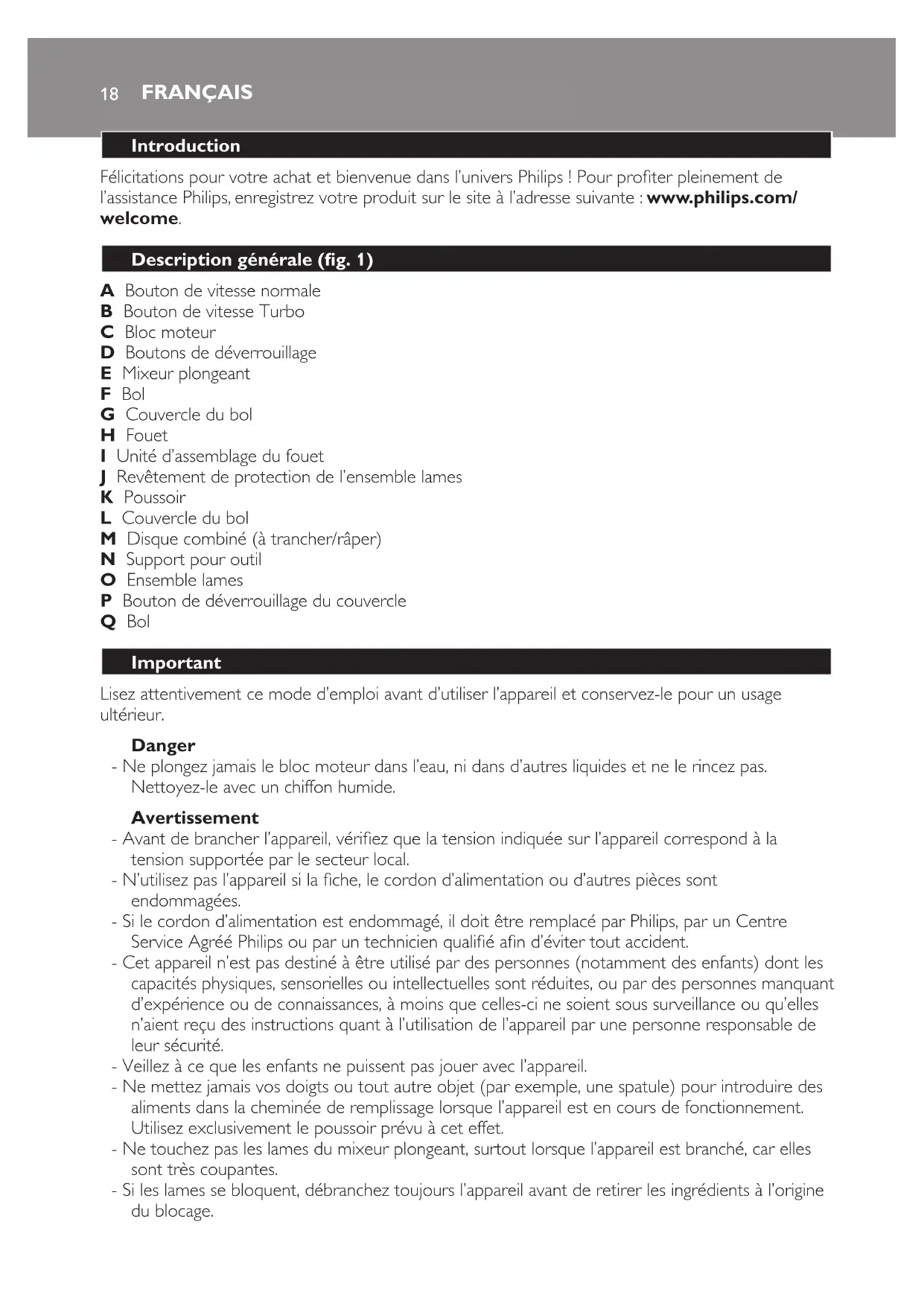 spéciquement recommandés par Philips. Votre garantie ne sera pas valable en cas d’utilisation
