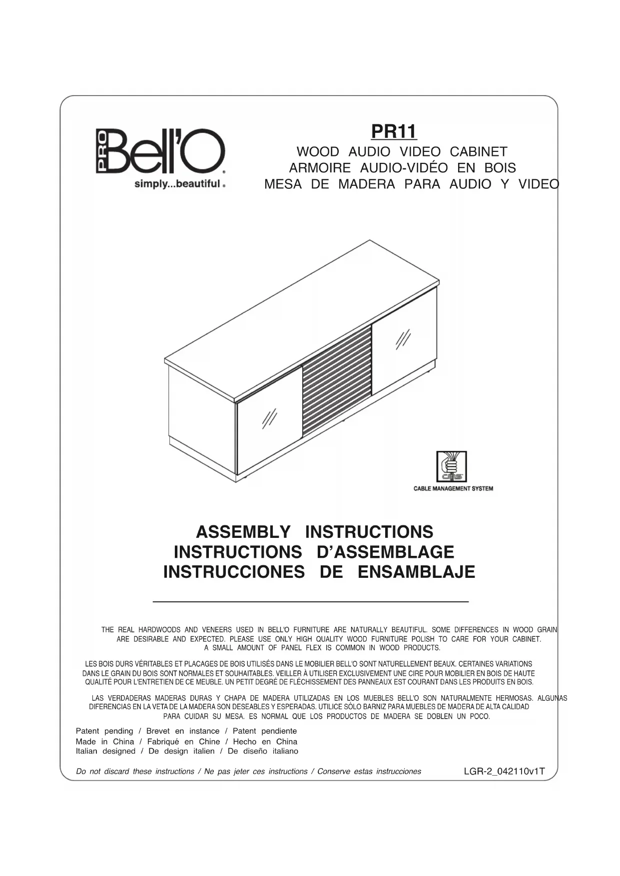 PR11 - Support écran plat Bell'O - Notice d'utilisation et mode d'emploi gratuit