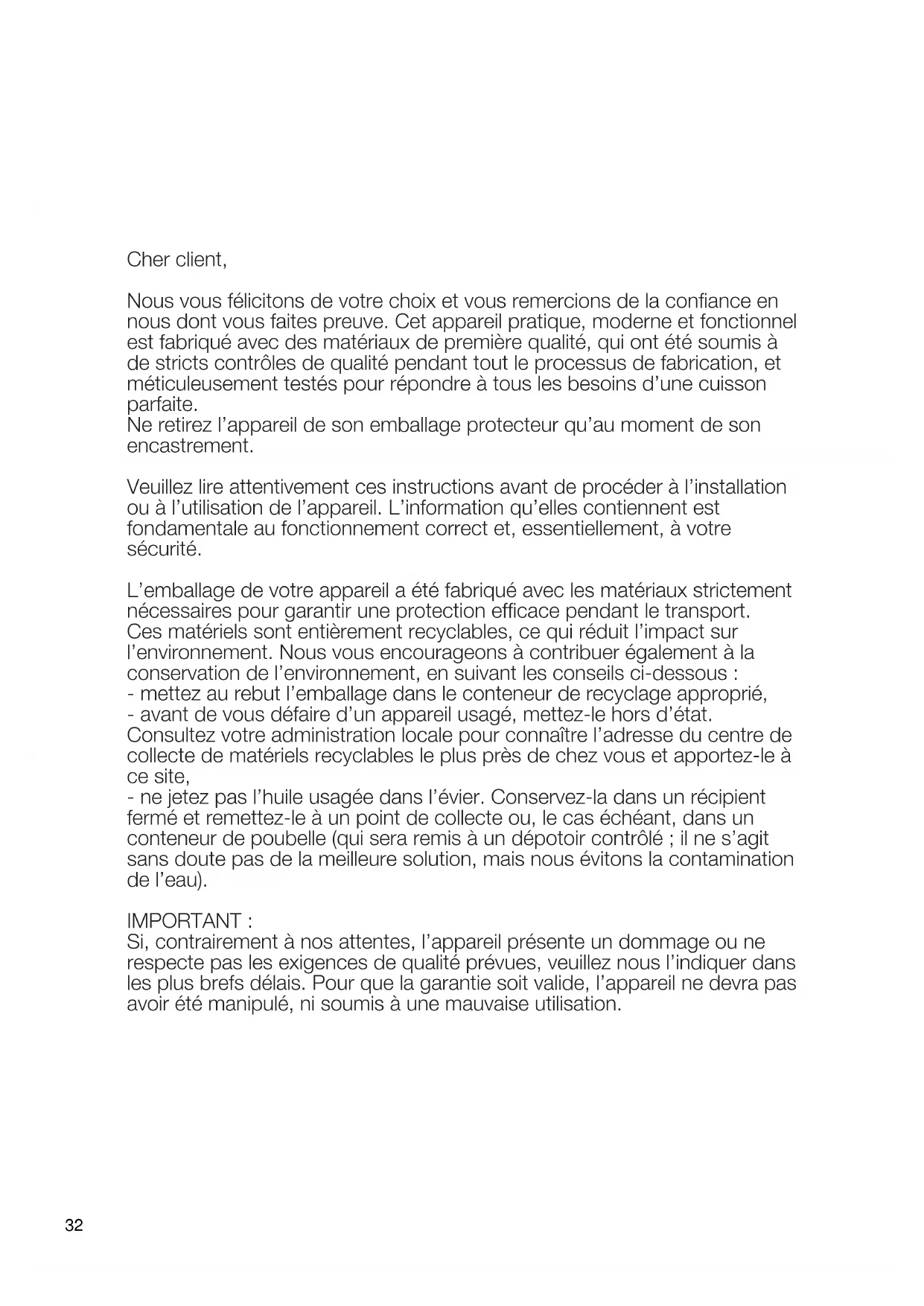 L’emballage de votre appareil a été fabriqué avec les matériaux strictement
