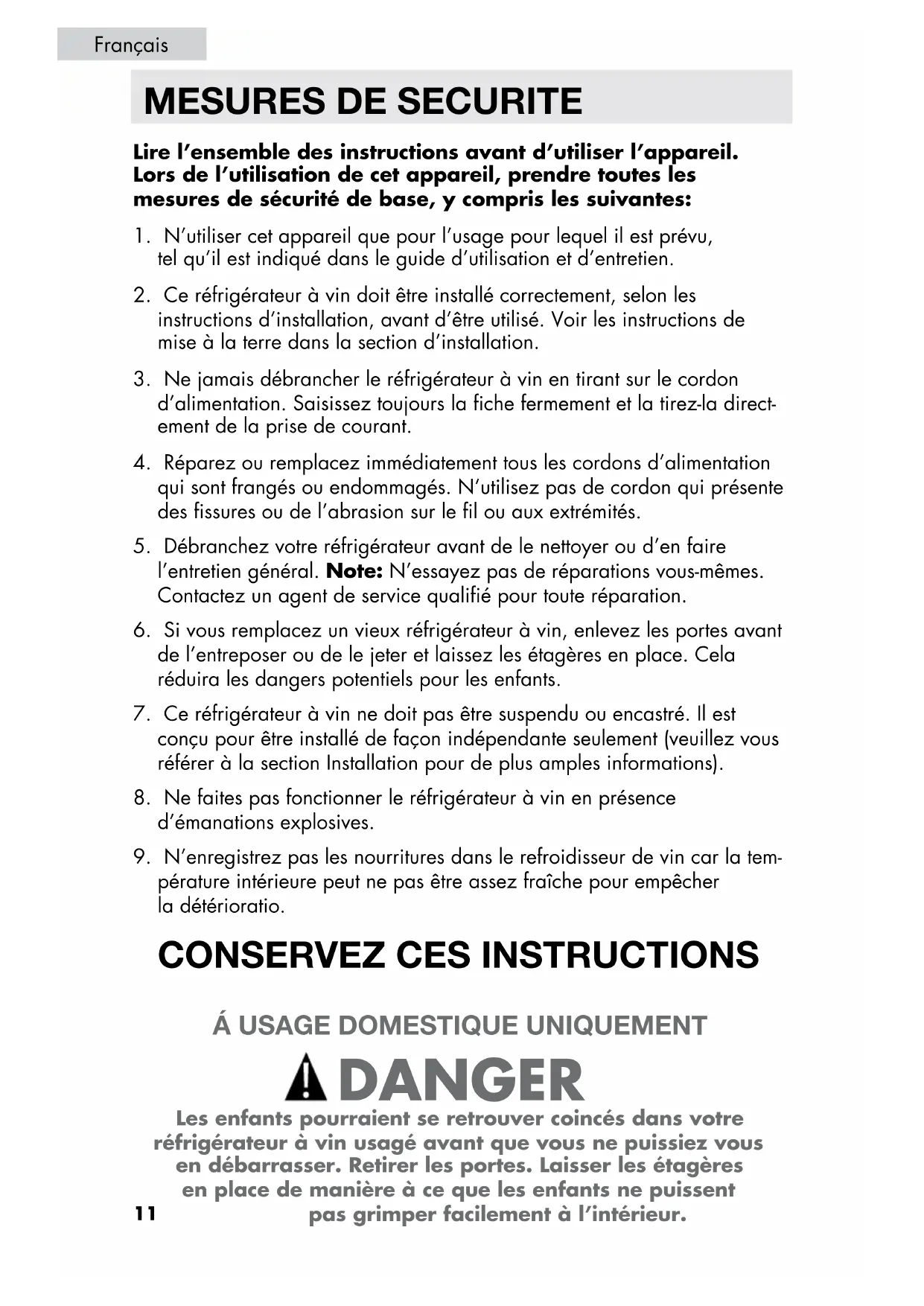 8. Ne faites pas fonctionner le réfrigérateur à vin en présence