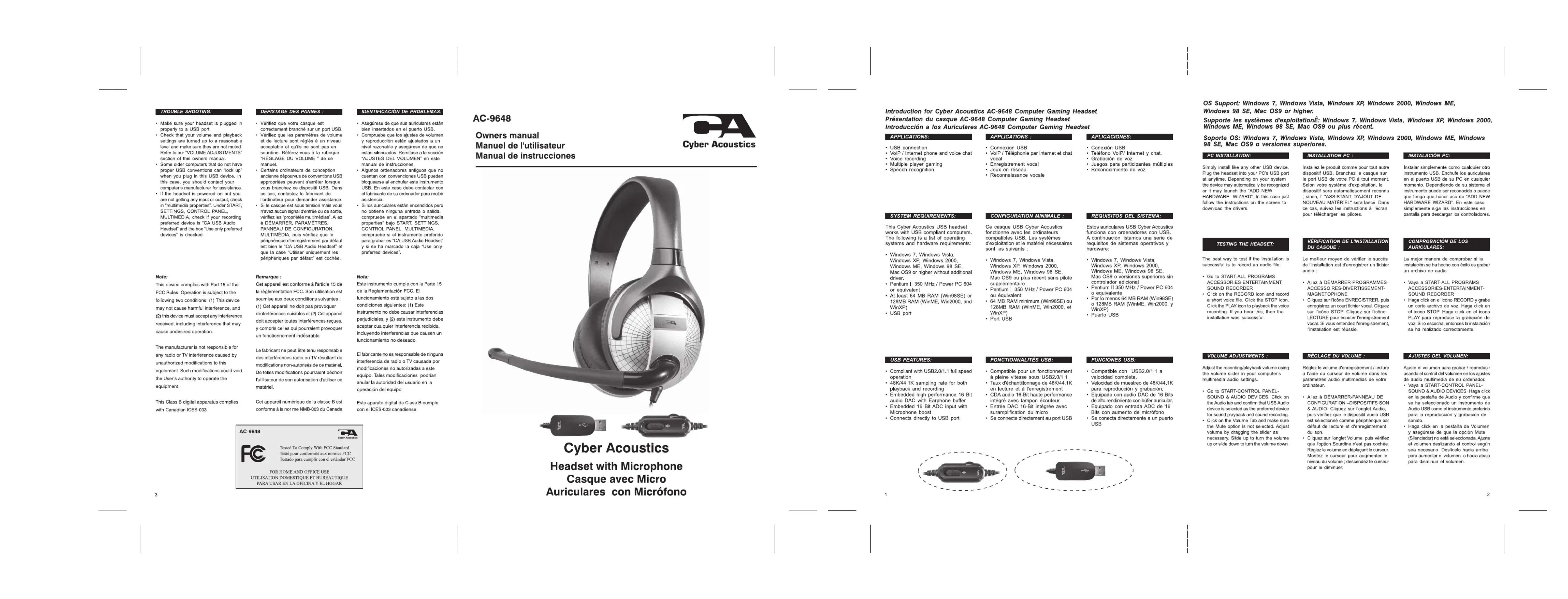 Retrouvez gratuitement la notice de l'appareil AC9648 Cyber Acoustics au format PDF.