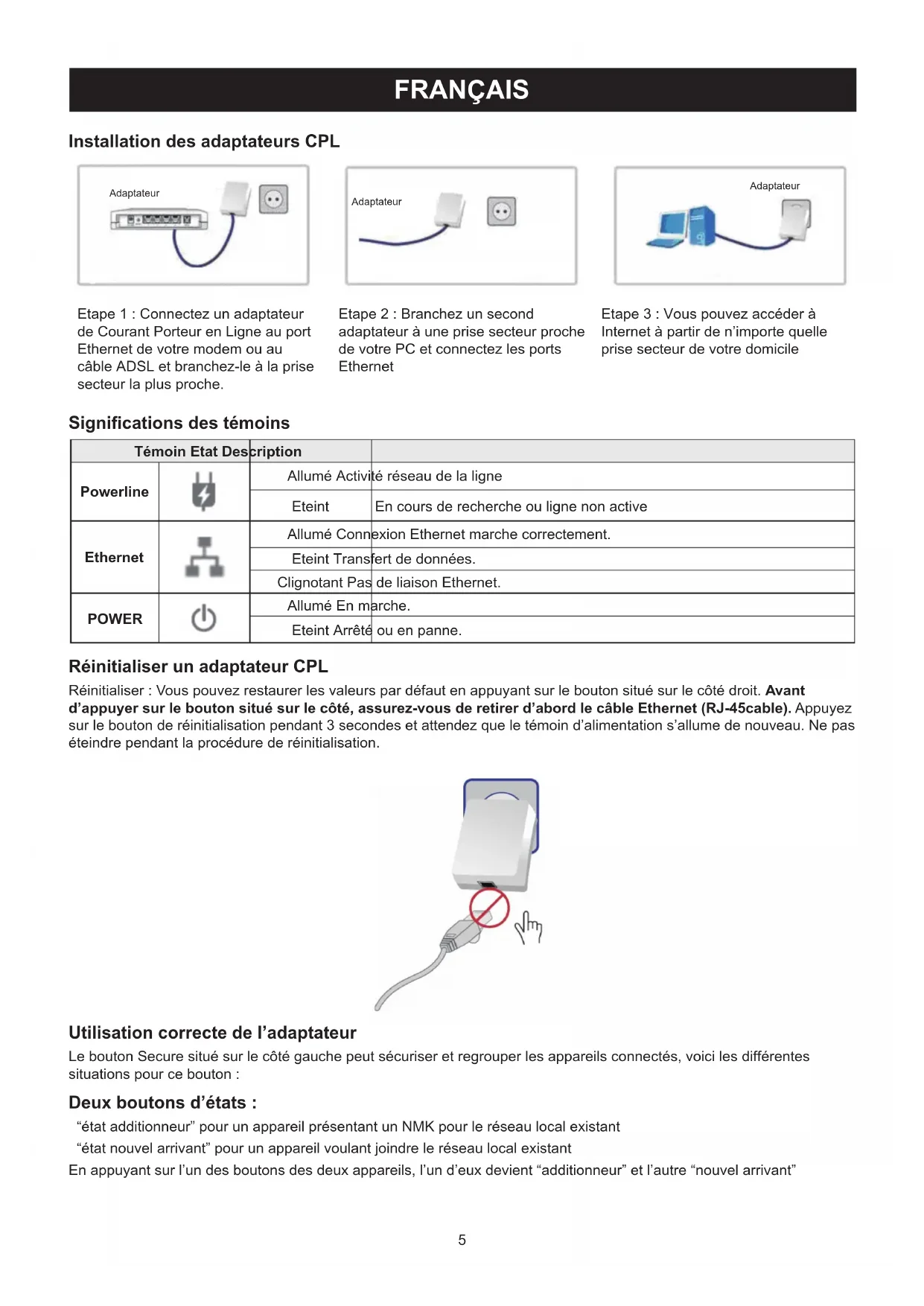 | Type de produit | Adaptateur CPL (Courant Porteur en Ligne) |