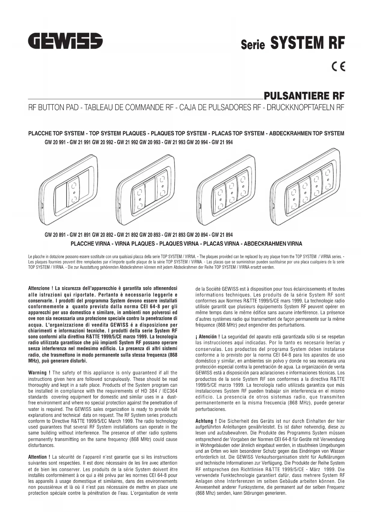 Retrouvez gratuitement la notice de l'appareil GW20483 Gewiss au format PDF.