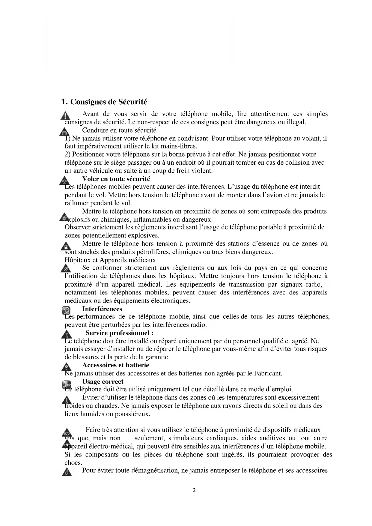 1) Ne jamais utiliser votre téléphone en conduisant. Pour utiliser votre téléphone au volant, il faut impératifement utiliser le kit mains-libres.