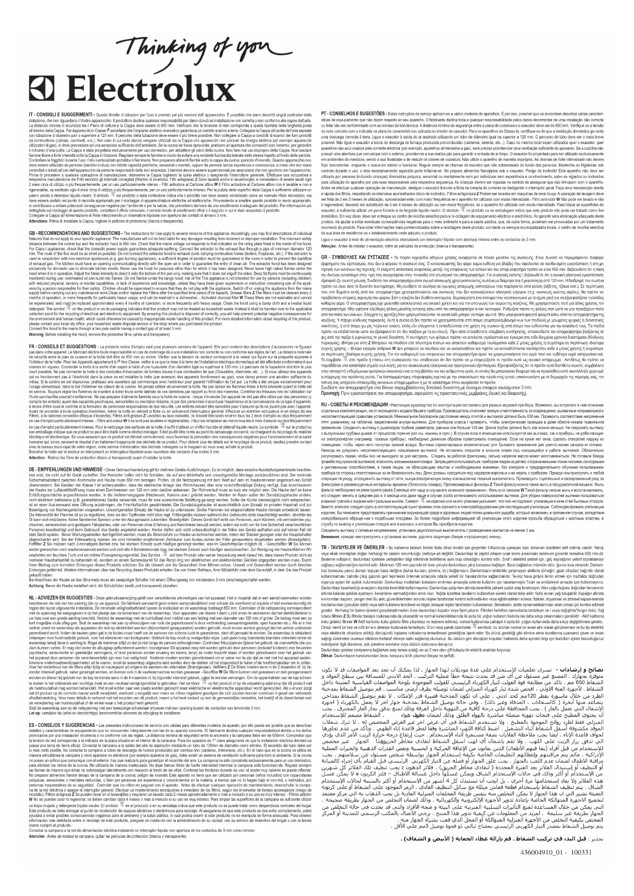 EFC90345X - Hotte ELECTROLUX - Notice d'utilisation et mode d'emploi gratuit