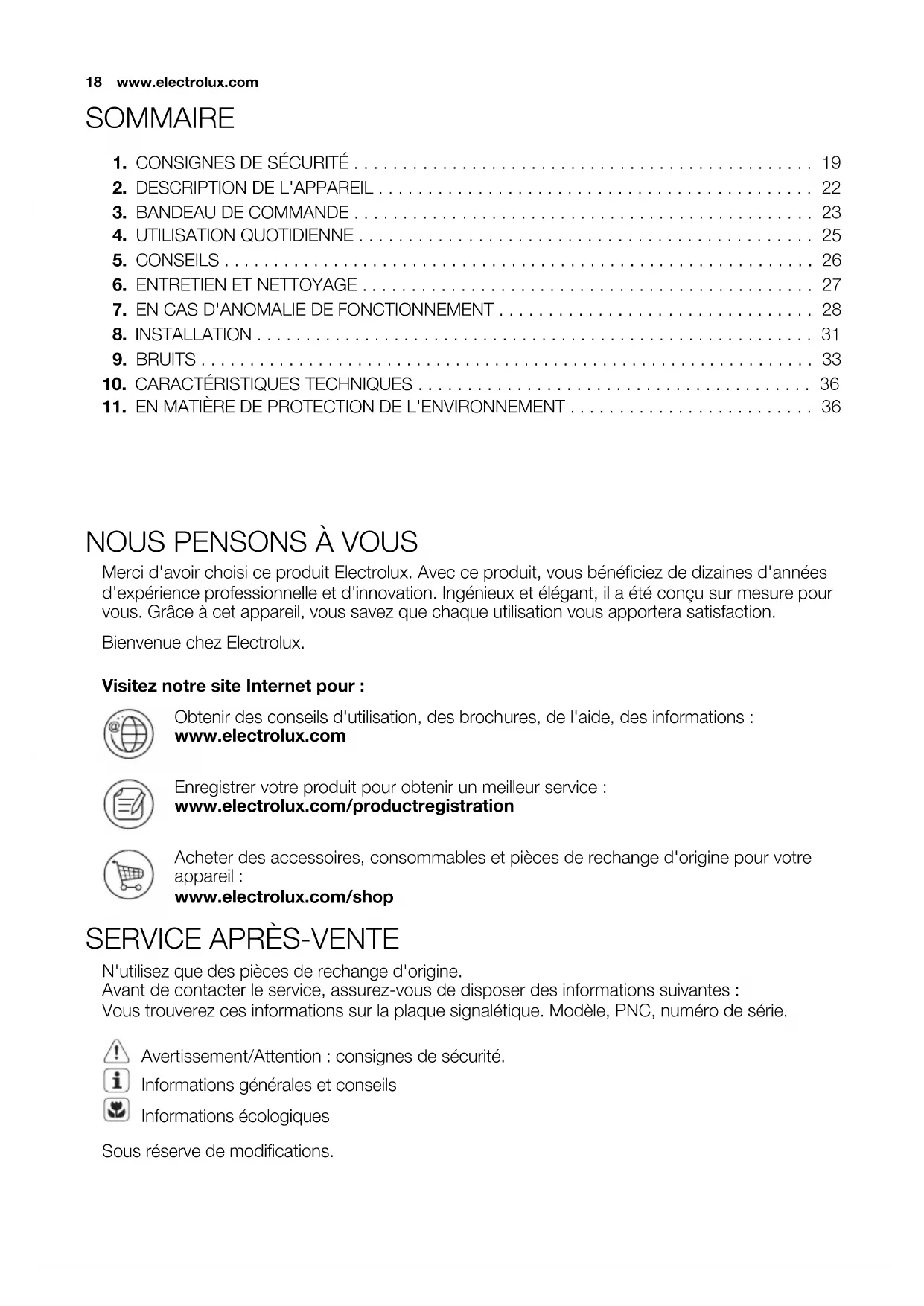 NOUS PENSONS À VOUS Merci d'avoir choisi ce produit Electrolux. Avec ce produit, vous bénéficiez de dizaines d'années