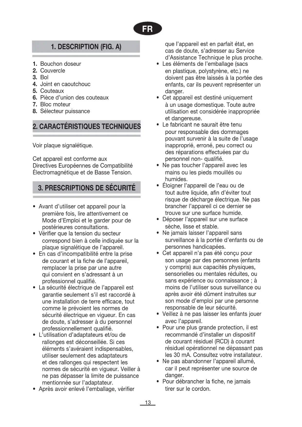 BV850 - Blender FAGOR - Notice d'utilisation et mode d'emploi gratuit