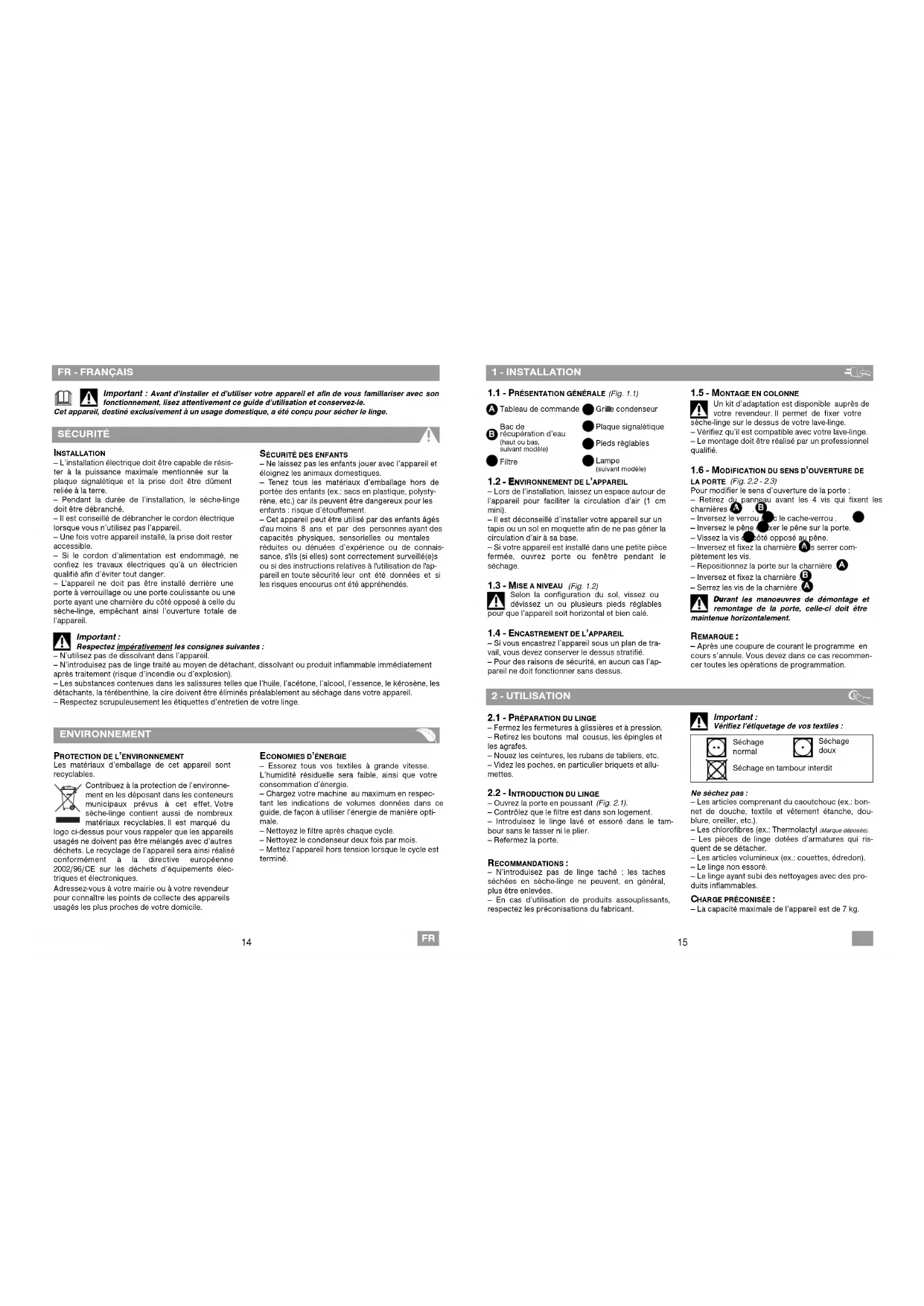 Cet appareil, destiné exclusivement à un usage domestique, a été conçu pour sécher le linge.
